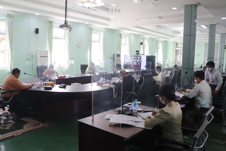 ပဲခူးတိုင်းဒေသကြီးအစိုးရအဖွဲ့ရုံး၊ တော်ဝင်ဟံသာခန်းမ၌ ယမန်နေ့ နံနက် ၁၀ နာရီက ပဲခူးတိုင်းဒေသကြီး သာသနာရေးဆိုင်ရာ ကြီးကြပ်မှုကော်မတီ လုပ်ငန်းညှိနှိုင်း အစည်းအဝေးအား Online Meeting စနစ်ဖြင့် ကျင်းပခဲ့သည်။