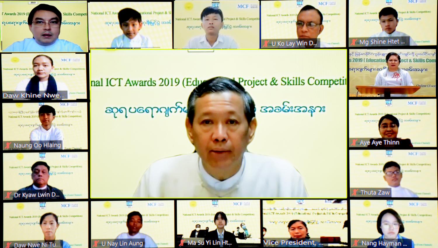 ပညာရေးဝန်ကြီးဌာနနှင့် မြန်မာနိုင်ငံ ကွန်ပျူတာအသင်းချုပ်တို့ ပူးပေါင်းကျင်းပသည့် National ICT Awards 2019 (Educational Project & Skills Competition) ဆုရပရောဂျက် များဆုချီးမြှင့်ပွဲ အခမ်းအနားကို ယနေ့နံနက် ၁၀ နာရီတွင် အွန်လိုင်းစနစ်ဖြင့် ကျင်းပသည်။