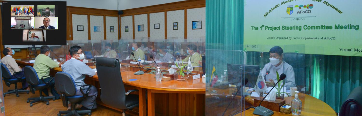 သစ်တောဦးစီးဌာနနှင့် အာရှဒေသ သစ်တောကဏ္ဍဆိုင်ရာ ပူးပေါင်းဆောင်ရွက် ရေးအဖွဲ့ “သစ်တောမှီခိုနေ ထိုင်သူများ၏ လူမှုဘဝဖွံ့ဖြိုးတိုးတက် စေရေးအတွက် သစ်တော ထိန်းသိမ်းခြင်းနှင့် ဒေသခံပြည်သူ အခြေပြု စီးပွားရေးလုပ်ငန်းများ ဖော်ဆောင်မှုဆိုင်ရာ စံပြသစ်တောများတည်ထောင်ခြင်းစီမံကိန်း (FD-AFoCO Model Forest Project)” ၏ ပထမအကြိမ် စီမံကိန်း လုပ်ငန်းကြီးကြပ် ရေးကော်မတီ အစည်းအဝေးကို ယနေ့ နံနက် ၁၀ နာရီတွင် virtual နည်းလမ်းဖြင့် ကျင်းပသည်။