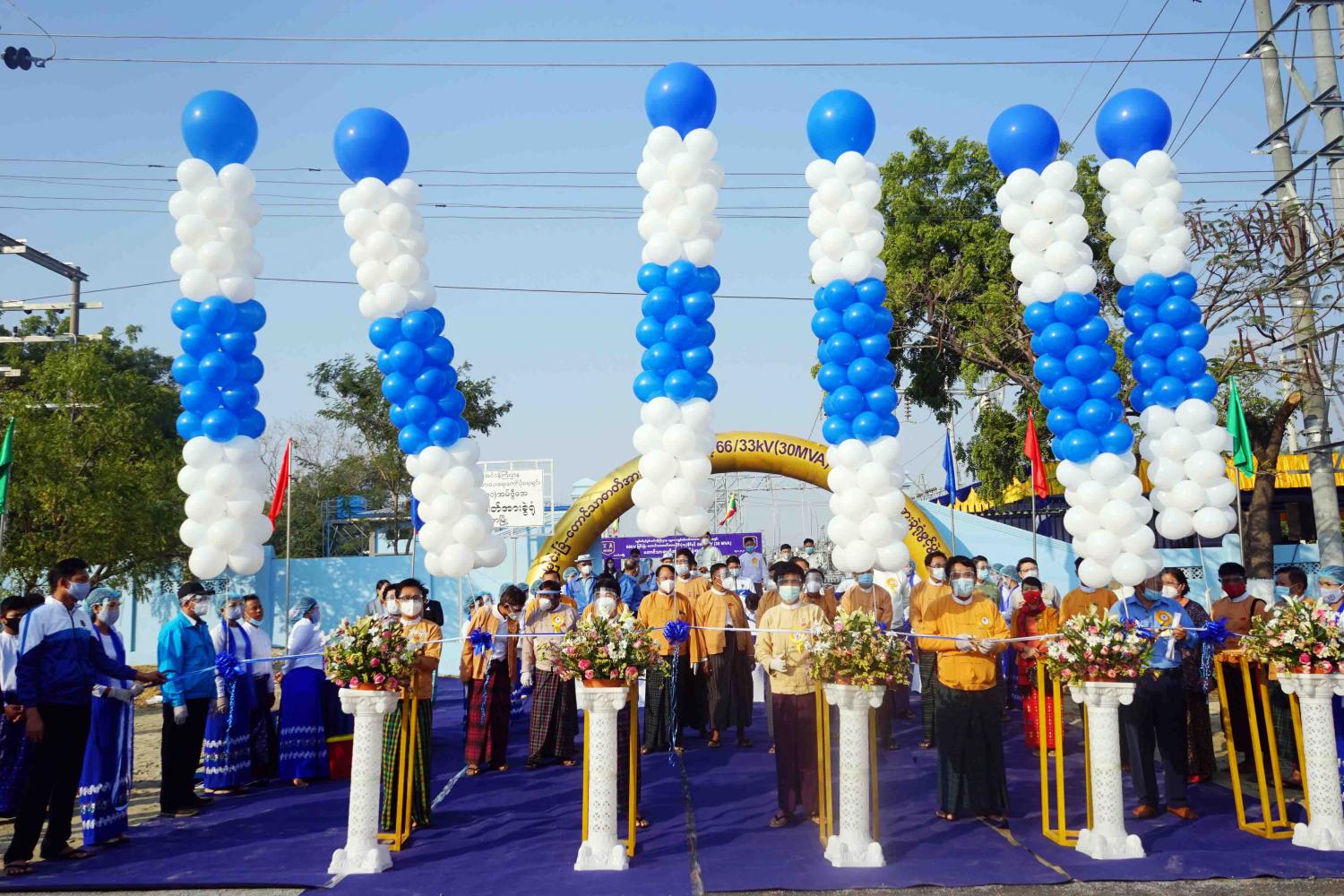ရှေးဦးစွာ လျှပ်စစ်စွမ်းအင်နှင့်ဆောက်လုပ်ရေးဝန်ကြီး ဦးဇာနည်အောင်၊ အမျိုးသားလွှတ်တော်ကိုယ်စားလှယ်ဦးအောင်မျိုးလတ်၊ တိုင်းဒေသကြီးလွှတ်တော်ကိုယ်စားလှယ် ဦးဝိုင်းချစ်အောင်၊ မန္တလေးလျှပ်စစ်ဓာတ်အားပေးရေး ကော်ပိုရေးရှင်း ခေတ္တဥက္ကဋ္ဌ ဦးတင်အောင်နှင့်မန္တလေးတိုင်းဒေသကြီး စက်မှုစွမ်းအင်နှင့်လျှပ်စစ်ရေးရာကော်မတီဥက္ကဋ္ဌ ဦးလှိုင်ဝင်းတို့က ဖဲကြိုးဖြတ်ဖွင့်လှစ်ပေးကြသည်။ ဆက်လက်၍ မန္တလေးတိုင်းဒေသကြီးအစိုးရအဖွဲ့ ဝန်ကြီးချုပ်ဒေါက်တာဇော်မြင့်မောင်က ဓာတ်အားခွဲရုံဆိုင်းဘုတ်အား စက်ခလုတ်နှိပ်ဖွင့်လှစ်ခဲ့ပြီး နံသာရေပက်ဖျန်းပေးခဲ့သည်။