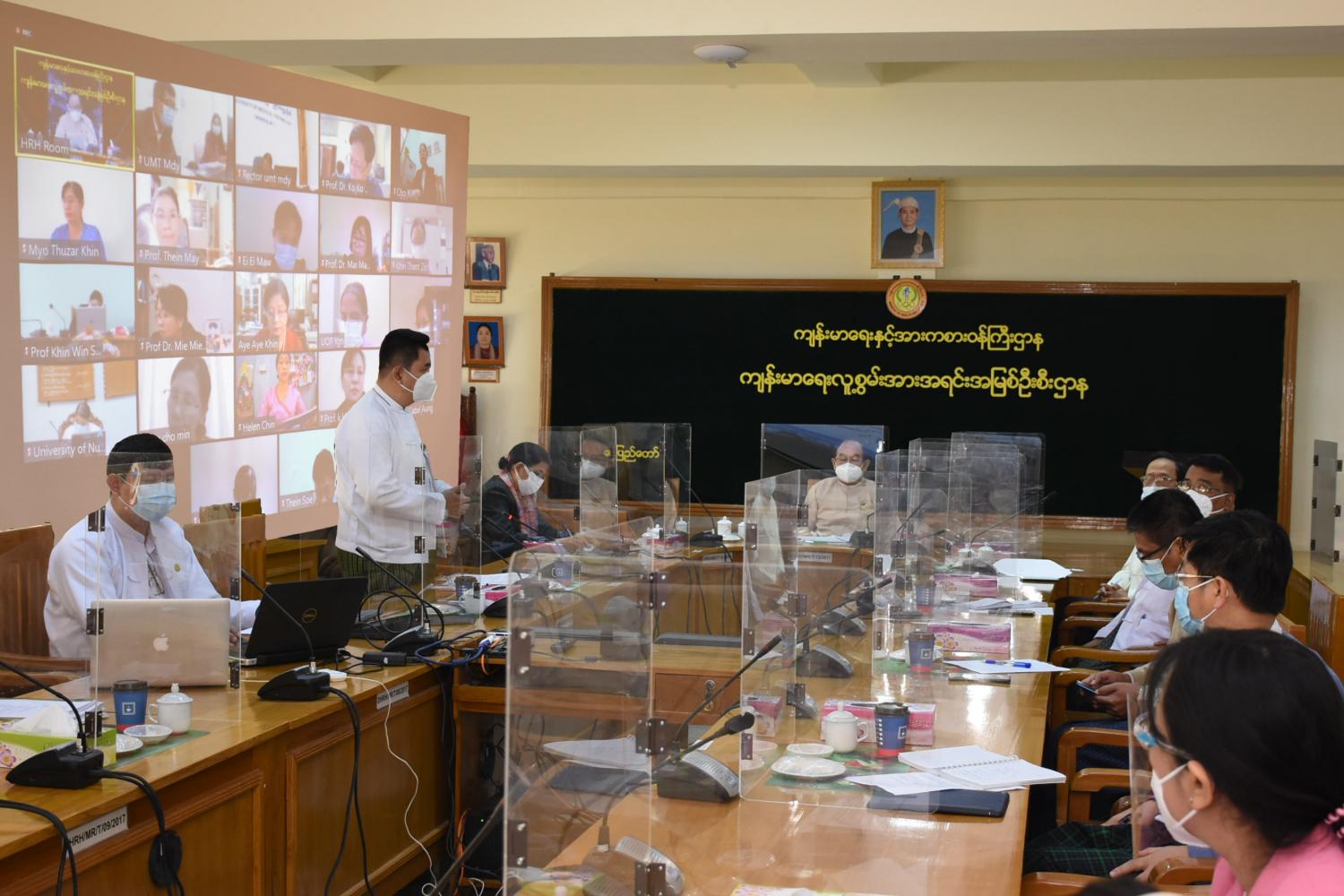 ဆေးပညာနှီးနွှယ်တက္ကသိုလ် (၇)ခု၏ နောက်ဆုံးနှစ် (၁/၂၀၂၀) (ပုံမှန်) သင်တန်းများ ပြန်လည်ဖွင့်လှစ်နိုင်ရေးနှင့် သင်ကြားရေးစနစ်ပိုမိုကောင်းမွန်စေရေး ညှိနှိုင်းအစည်းအဝေး ကျင်းပ