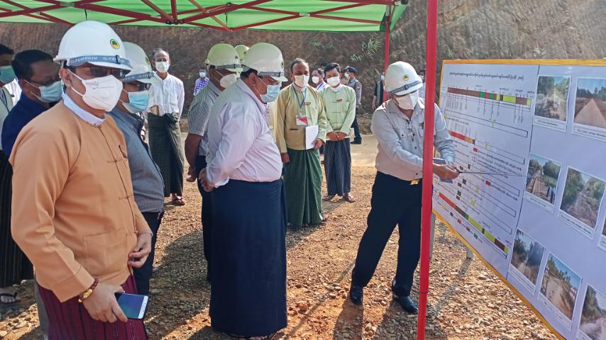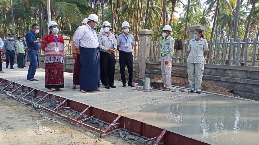ဧရာဝတီတိုင်းဒေသကြီးနှင့် ရခိုင်ပြည်နယ်သို့ဆက်သွယ်မည့် (ကမ်းခြေပတ်လမ်း) ဖောက်လုပ်နေမှု အခြေအနေများအား တိုင်းဒေသကြီး ဝန်ကြီးချုပ်နှင့်ဝန်ကြီးများမှ ကြည့်ရှုစစ်ဆေး