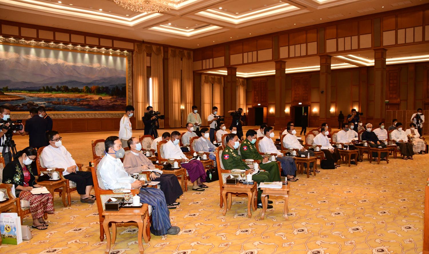 နိုင်ငံတော်စီမံအုပ်ချုပ်ရေးကောင်စီဥက္ကဋ္ဌ၊ တပ်မတော်ကာကွယ်ရေးဦးစီးချုပ် ဗိုလ်ချုပ်မှူးကြီး မင်းအောင်လှိုင် မြန်မာနိုင်ငံဘဏ်များအသင်း နာယက၊ ဥက္ကဋ္ဌနှင့် တာဝန်ရှိသူများ၊ ပုဂ္ဂလိက ဘဏ်များမှ ဥက္ကဋ္ဌများ၊ ဒုတိယဥက္ကဋ္ဌများ၊ တာဝန်ရှိသူများနှင့်တွေ့ဆုံ