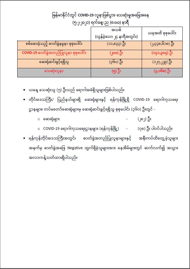 COVID-19 ရောဂါ စောင့်ကြပ်ကြည့်ရှုမှုနှင့် ပတ်သက်၍ သတင်းထုတ်ပြန်ခြင်း (5-2-2021, 8:00 PM)