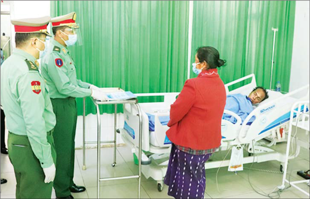 ဆေးရုံတက်လူနာများကိုသက်ဆိုင်ရာ  တိုင်းစစ်ဌာနချုပ်အသီးသီးမှ တာဝန် ရှိသူများက လည်း ကောင်း သွားရောက် ကြည့်ရှုအားပေးပြီး စားသောက် ဖွယ်ရာများ ပေးအပ်ခဲ့ကြောင်း တပ်မတော်ကာကွယ်ရေး ဦးစီးချုပ် ရုံး၏ သတင်းထုတ်ပြန်ချက်အရ သိရသည်။