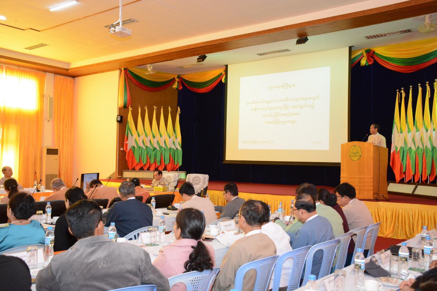 ထို့နောက် လူမှုဝန်ထမ်း၊ကယ်ဆယ်ရေးနှင့်ပြန်လည်နေရာချထားရေးဝန်ကြီးဌာန၊ လူမှုဝန် ထမ်းဦးစီး ဌာန ညွှန်ကြားရေးမှူးချုပ် ဒေါက်တာစန်းစန်းအေးက ဆောင်ရွက်မည့် လုပ်ငန်းစဉ်များနှင့် ပတ်သက်၍ ဆွေးနွေးတင်ပြသည်။