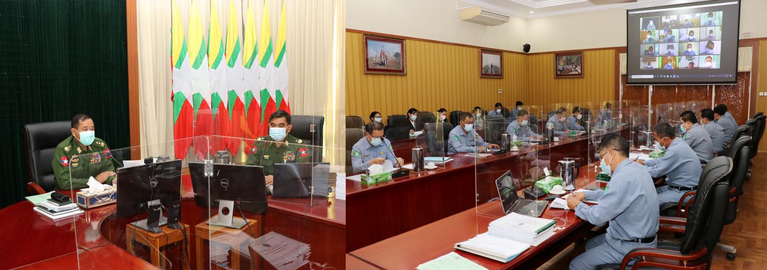 အစည်းအဝေးတွင် နယ်စပ်ရေးရာဝန်ကြီးဌာန ပြည်ထောင်စုဝန်ကြီး ဒုတိယဗိုလ်ချုပ်ကြီး ထွန်းထွန်းနောင် က လက်ရှိကမ္ဘာတစ်ဝန်း ဖြစ်ပွားနေသည့် ကိုဗစ်-၁၉ ကပ်ရောဂါကြောင့် ဒေသအသီးသီး၌ ကျန်းမာရေးဆိုင်ရာ ကိစ္စရပ်များအပြင် စီးပွားရေး၊ လူမှုရေး၊ ပညာရေးစသည့် လူမှုစီးပွားကဏ္ဍအသီးသီး၌ပါ ထိခိုက်မှုများ ရင်ဆိုင်ကြုံတွေ့နေရပါကြောင်း၊ ရောဂါကူးစက်မှုနှင့် ပြီးဆုံးမည့်အခြေအနေကို ခန့်မှန်းရန်ခက်ခဲသည့်အတွက် ကာကွယ်ဆေးများ တစ်နိုင်ငံလုံး အတိုင်းအတာ ထိုးနှံပြီးမှသာ စိတ်ချရမည့် အခြေအနေဖြစ်ပါကြောင်း၊ ကာကွယ်ဆေး အမြန်ဆုံးထိုးနှံနိုင်ရေးအတွက် နိုင်ငံတော်စီမံအုပ်ချုပ်ရေးကောင်စီက ဆောင်ရွက်လျက်ရှိပြီး ကြားကာလတွင် ကျန်းမာရေးနှင့်အားကစားဝန်ကြီးဌာနက ထုတ်ပြန်ထားသည့် ကိုဗစ်-၁၉ ရောဂါကာကွယ်ရေးဆိုင်ရာ ညွှန်ကြားချက်များနှင့်အညီ အသိ၊ သတိတို့ဖြင့် လုပ်ငန်းတာဝန်များကို ကျေပွန်စွာ ထမ်းဆောင်ကြစေလိုကြောင်း၊ ခေတ္တပိတ်ထားရသည့် လူစွမ်းအားအရင်းအမြစ် ဖွံ့ဖြိုးရေးဆိုင်ရာတက္ကသိုလ်၊ ဒီဂရီကောလိပ်၊ လူငယ်သင်တန်းကျောင်းနှင့် အသက်မွေးပညာ သင်တန်းကျောင်းများကိုလည်း ကိုဗစ်-၁၉ အလွန် ကာလများတွင် စနစ်တကျပြန်လည်ဖွင့်လှစ် နိုင်ရေး၊ နည်းပြများနှင့် ဝန်ထမ်းများ၏ စွမ်းဆောင်ရည်မြှင့်တင်ရေး Capacity Building အတွက် စဉ်ဆက်မပြတ်လေ့ကျင့်သင်ကြားမှုများ ဆောင်ရွက်ရေး၊ ၂၀၂၀-၂၀၂၁ ဘဏ္ဍာရေးနှစ်အတွင်း တိုင်းဒေသကြီးနှင့်ပြည်နယ်အလိုက် ဆောင်ရွက်လျက်ရှိသော တည်ဆောက်ရေး လုပ်ငန်းများကို သတ်မှတ်အရည်အသွေး၊ စံချိန်စံညွှန်းများနှင့်အညီ အချိန်မီပြီးစီးရေးတို့ကို သတိပြု ဆောင်ရွက်ကြရန်နှင့် လုပ်ငန်းနှင့်စပ်လျဉ်း၍ တွေ့ကြုံရသည့် စိန်ခေါ်မှုများ၊ လိုအပ်ချက်များအပေါ် ညှိနှိုင်းပေါင်းစပ် ဖြေရှင်းပေးနိုင်ရေးအတွက် လုပ်ငန်းညှိနှိုင်းအစည်းအဝေး ကျင်းပပြုလုပ်ရခြင်း ဖြစ်ကြောင်း၊