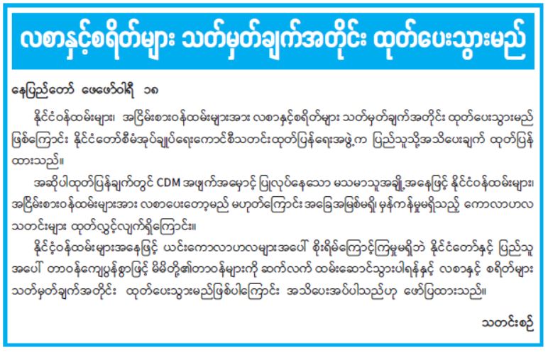 လစာနှင့်စရိတ်များ သတ်မှတ်ချက်အတိုင်း ထုတ်ပေးသွားမည်