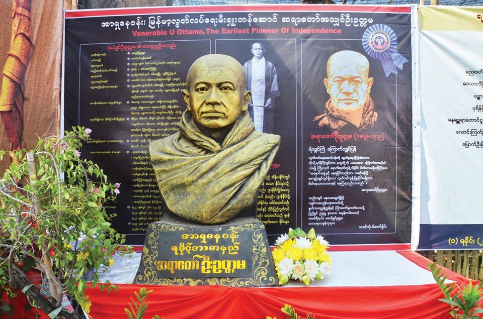 ထိုပြခန်းအဝင်ဝတွင်ပင် မြန်မာ့လွတ်လပ်ရေး၏ မီးရှူးတန်ဆောင် အာရှတိုက်အတွင်းရှိ အင်္ဂလိပ်လက်အောက် ကျရောက်နေသည့် အခြားနိုင်ငံများ၏ လွတ်လပ်ရေးအတွက်ပါ ပထမဆုံး ဦးဆောင်လမ်းပြပေးခဲ့သည့် အာရှနေဝန်း ရခိုင့် အာဇာနည်ဆရာတော် အသျှင် ဦးဥတ္တမရုပ်တုကိုလည်း တွေ့မြင်ရမည်ဖြစ်သည်။
