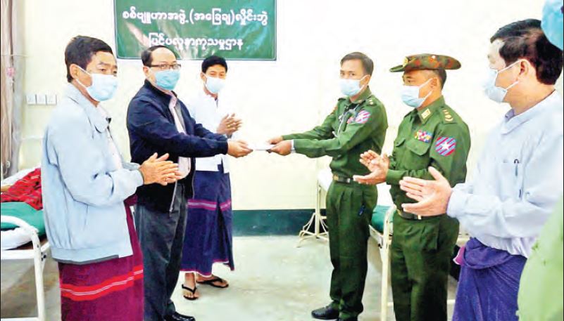 ယင်းနောက် တိုင်းရင်းသားပြည်သူများ၏ ကျန်းမာရေးဆိုင်ရာအခက်အခဲများကို တစ်ထောင့် တစ်နေရာမှ အထောက်အကူပြုစေရန်အတွက် အရှေ့တောင်တိုင်းစစ်ဌာနချုပ် စစ်ဗျူဟာအဖွဲ့ (လှိုင်းဘွဲ့)မှ ပြင်ပလူနာကုသမှုဌာနအဖြစ် ဖွင့်လှစ်ထားသော လှိုင်းဘွဲ့မြို့ အောင်ဆန်းခန်းမသို့ ရောက်ရှိပြီး လှိုင်းဘွဲ့မြို့နှင့် ပတ်ဝန်းကျင်ကျေးရွာ များမှ လာရောက်ဆေးကုသမှုခံယူလျက်ရှိသော မိဘပြည်သူများအား ရင်းရင်းနှီးနှီးတွေ့ဆုံအားပေး စကားပြောကြားကာ ပြင်ပလူနာ ကုသမှုဌာနအတွက် ထောက်ပံ့ငွေများ ပေးအပ်ခဲ့ကြောင်း သိရသည်။