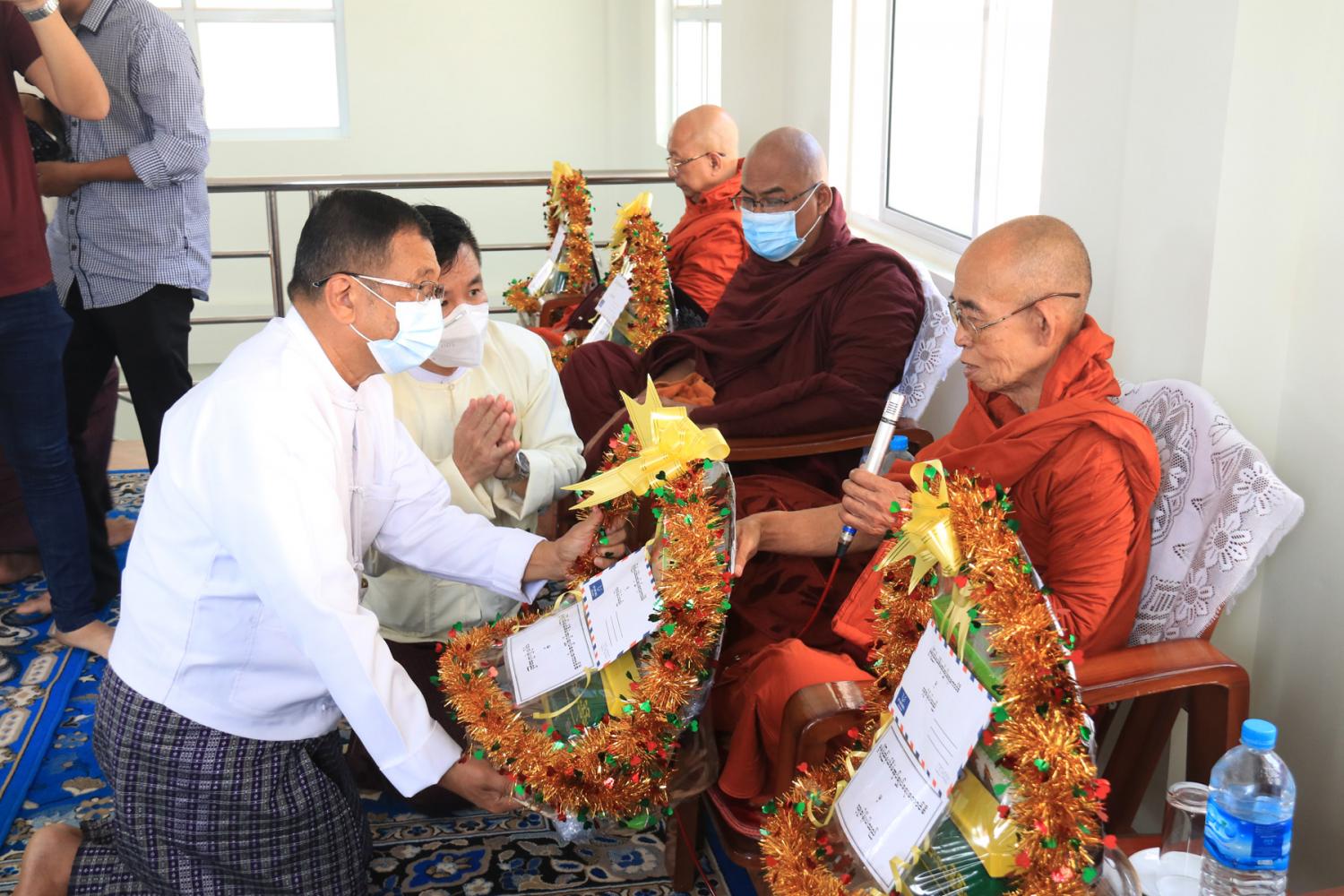 မွန်ပြည်နယ်စီမံအုပ်ချုပ်ရေး ကောင်စီဥက္ကဋ္ဌ ဝိနယာနုဂ္ဂဟအသင်း ရာပြည့် အထိမ်းအမှတ် ဆောက်လုပ် လှူဒါန်းခဲ့သော နှစ်ထပ်ကျောင်းဆောင်သစ် ကျောင်းလွှတ်ပူဇာ မင်္ဂလာအခမ်းအနားသို့ တက်ရောက်