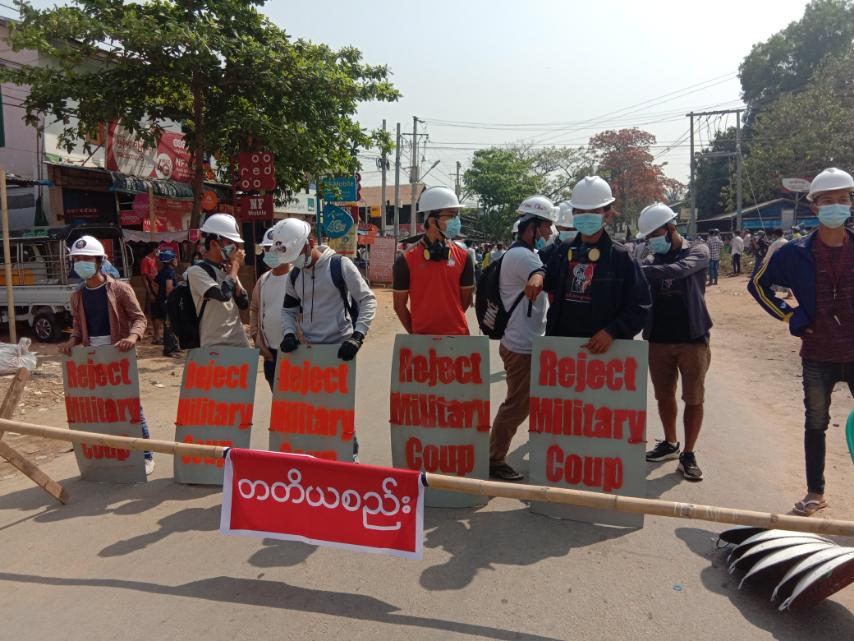ပြည်ထောင်စုနယ်မြေ၊ နေပြည်တော်၊ ပျဉ်းမနား၊ ယုဇန လမ်းသွယ်တွင် ယနေ့ မွန်းလွဲ ၁ နာရီခွဲက လူစုလူဝေးပြုလုပ်ကာ လမ်းအချို့အား အကာအရံ အတားအဆီးများဖြင့် ပိတ်ဆို့ခြင်း၊ ပလပ်စတစ် ပုံးကြီးများကို ထက်ခြမ်းခြမ်း၍ ရဲတပ်ဖွဲ့သုံး (ဒိုင်း)ကြီးများသဖွယ်ပြုလုပ်၍ တုတ်/ ဓား ကိုင်ဆောင်ထား သူ ၂၅၀ ကျော်ခန့်မှာ ထိုင်သပိတ်ပြုလုပ်၍ ကြွေးကြော်သံများဖြင့် အော်ဟစ်ဆူပူ လူစုလူဝေး ပြုလုပ်နေကြောင်း သိရသည်။