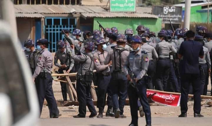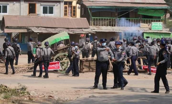 သတင်းရရှိလျှင်ရရှိချင်း လုံခြုံရေးတပ်ဖွဲ့ဝင်များမှ ဥပဒေနှင့်အညီ ထိန်းသိမ်းနိုင်ရေး အဆိုပါ နေရာသို့ သွားရောက်ခဲ့ရာ တပ်ဖွဲ့ဝင်များအား ခဲများဖြင့်ပစ်ပေါက်ခြင်း၊ လောက်လေးဂွများဖြင့် ပစ်ခတ်ခဲ့သဖြင့် လုံခြုံရေးတပ်ဖွဲ့ဝင်များမှ အသံမြည်ဗုံးအသုံးပြု၍ (.၁၂) ဗို့ ဖြင့် အသံပေးခြောက်လှန့် ပစ်ခတ်ခဲ့ရာ မွန်းလွဲ ၂ နာရီ ၁၅ မိနစ်ခန့်တွင် လူစုကွဲသွားခဲ့သည်။