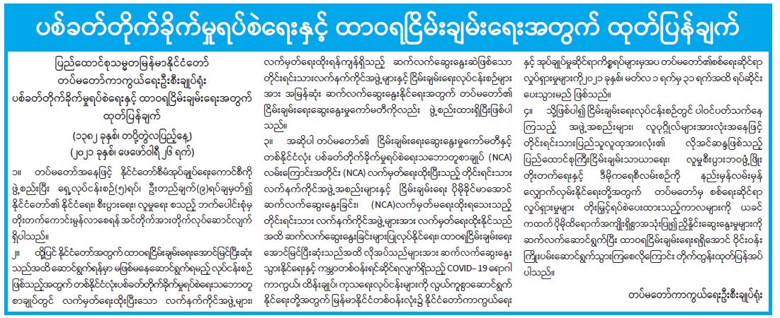 ပစ်ခတ်တိုက်ခိုက်မှုရပ်စဲရေးနှင့် ထာ၀ရငြိမ်းချမ်းရေးအတွက် ထုတ်ပြန်ချက်