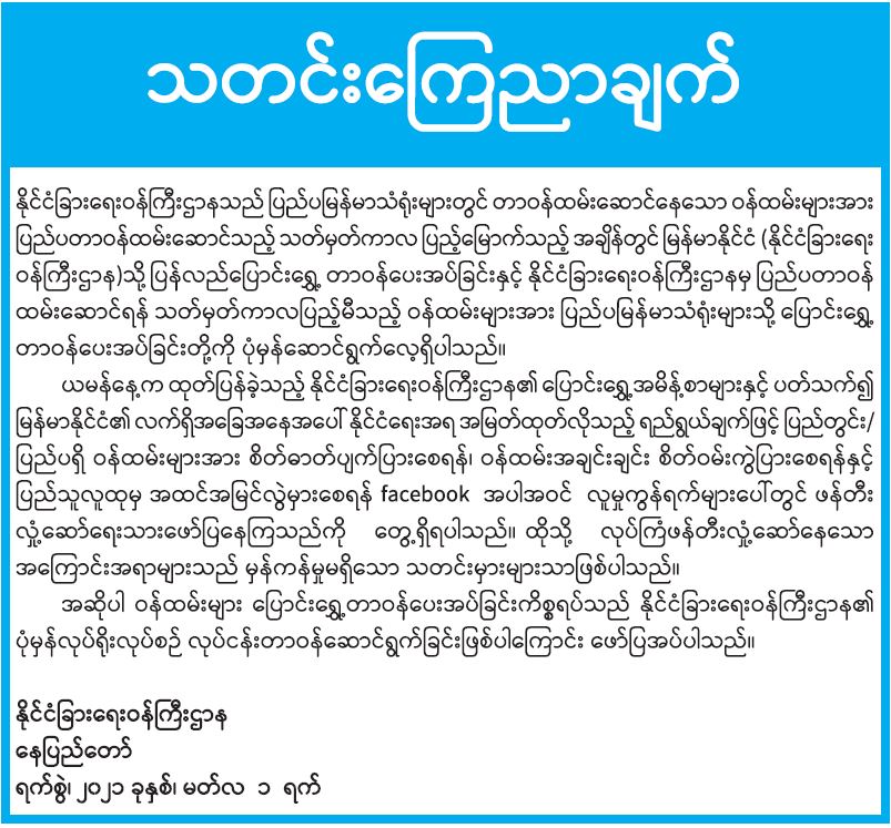 ဝန်ကြီးဌာန ကြေညာချက်များ
