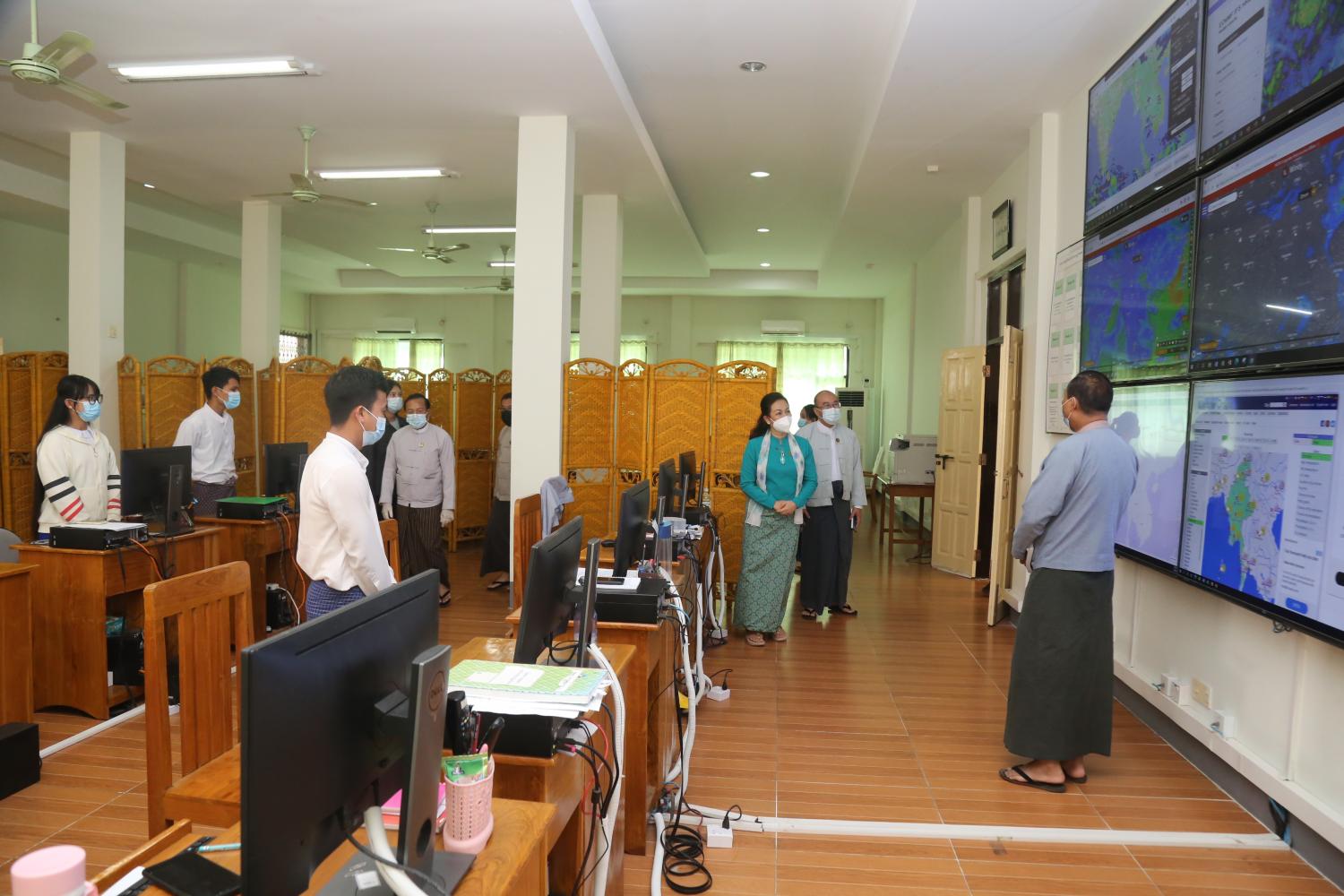 ထို့နောက် မွန်းလွဲပိုင်းတွင် ပြည်ထောင်စုဝန်ကြီးနှင့်အတူ ဒုတိယဝန်ကြီး၊ အမြဲတမ်း အတွင်းဝန်၊ ညွှန်ကြားရေးမှူးချုပ်များနှင့် တာဝန်ရှိသူများသည် ပြည်ထောင်စုဝန်ကြီးရုံးရှိ ဌာနခွဲများ၊ လူမှုဝန်ထမ်းဦးစီးဌာန၊ ဘေးအန္တရာယ်ဆိုင်ရာ စီမံခန့်ခွဲမှုဦးစီးဌာန၊ ပြန်လည်ထူထောင်ရေး ဦးစီးဌာနနှင့် အရေးပေါ်အခြေအနေစီမံခန့်ခွဲမှုဗဟိုဌာနသို့ သွားရောက်၍ လုပ်ငန်းဆောင်ရွက် နေမှုများအား ကြည့်ရှု၍ ဝန်ထမ်းများနှင့် ရင်းရင်းနှီးနှီးနှုတ်ဆက်စကား ပြောကြားခဲ့ကြောင်း သိရသည်။