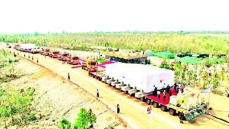 နေပြည်တော်တွင် တည်ထားကိုးကွယ်မည့် ဘူမိဖဿမုဒြာထိုင်တော်မူ ကျောက်ဆစ် ဗုဒ္ဓရုပ်ပွား တော်မြတ်ကြီး၏ ဆင်းတုတော်နှင့် ပလ္လင်တော် အစိတ်အပိုင်းများကို Modular Trailer များဖြင့် ဆီမီးခုံဆိပ်ကမ်းမှ နေပြည်တော်ကောင်စီနယ်မြေသို့ ပို့ဆောင်လျက်ရှိရာ တတိယအကြိမ် အဖြစ် ပလ္လင်တော်အပိုင်း ၂ နှင့် အပိုင်း (၁/၂)အရန်တို့ကို မတ် ၉ ရက်တွင် ဆီမီးခုံဆိပ်ကမ်းမှ ပင့်ဆောင်ပူဇော်ရာ တည်ထားကိုးကွယ်မည့် မင်္ဂလာနေရာသို့ ယမန်နေ့ညပိုင်းတွင် ရောက်ရှိခဲ့သည်။