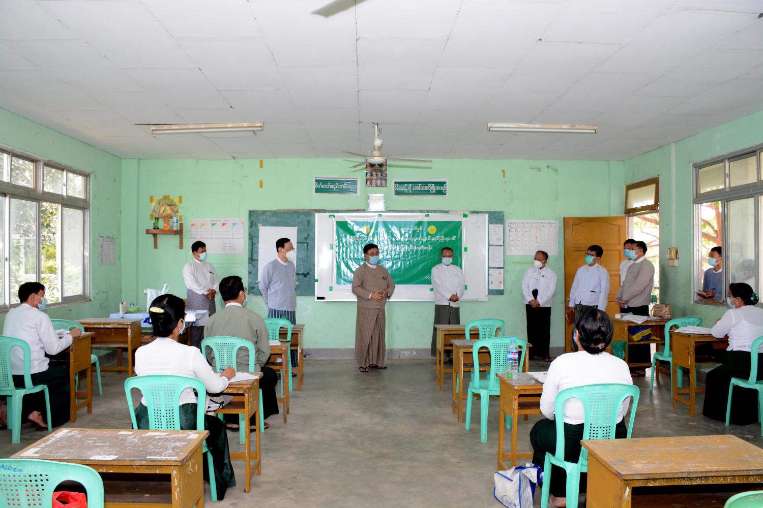 ကျောင်းအုပ်ကြီးများအနေဖြင့် အခြေခံပညာကျောင်းများ ဖွင့်လှစ်နိုင်ရေး အတွက် ကျောင်းပတ်ဝန်းကျင် သန့်ရှင်းသာယာရေး၊ ကျောင်းဥပဓိရုပ်ကောင်းမွန် ရေးအတွက် ကြိုတင်ပြင်ဆင် ဆောင်ရွက်ထားကြရမည်ဖြစ်ပါကြောင်း၊ မိမိကျောင်း၏ အထွေထွေလိုအပ်ချက်များကို ပွင့်ပွင့်လင်းလင်းတင်ပြ၍ လုပ်ထုံးလုပ်နည်းနှင့်အညီ မြန်မြန်ဆန်ဆန်ဖြည့်ဆည်း ဆောင်ရွက်စေလိုပါကြောင်း၊ ကျောင်းစာကြည့်တိုက်များ အတွက် လိုအပ်သော စာအုပ်စင်၊ စာအုပ်ဗီဒိုများ၊ သုတ၊ ရသစာအုပ် စာစောင်များ ဖြည့်ဆည်းပေးမည်ဖြစ်ပါကြောင်း၊ ကျောင်းများ အားလုံးတွင် ကျောင်းသား၊ ဆရာ အချိုးအရ ကျောင်းအတွက်လိုအပ်သော ပရိဘောဂပစ္စည်းများ၊ ရေ၊ မီး၊ ပြည့်စုံမှု တူညီရန်လိုသကဲ့သို့ သင်ကြားရေးနှင့်စီမံခန့်ခွဲရေး ပြည့်စုံကောင်းမွန်မှုများလည်း တူညီရန်လိုအပ်ပါကြောင်း၊ အနာဂတ်တွင် ခေါင်းဆောင်များဖြစ်ကြမည့် ကျောင်းသား ကျောင်းသူများကို ကျေးလက်မြို့ပြ၊ ဆင်းရဲချမ်းသာ စသည့်မည်သည့်ခွဲခြားမှုမျှ မရှိစေဘဲ ညီမျှသော သင်ယူမှုအခွင့်အလမ်း ရရှိအောင်ဆောင်ရွက်ပေးရန် အရေးကြီး ပါကြောင်း၊ ကျောင်းအုပ်ကြီးများအနေဖြင့် အရည်အသွေးမြှင့် မွမ်းမံသင်တန်းတွင် စီမံ၊ ဘဏ္ဍာနှင့် ပညာကဏ္ဍ စည်းမျဉ်းစည်းကမ်း၊ လုပ်ထုံးလုပ်နည်းများကို လေ့လာ ဆွေးနွေးကာ မိမိတို့၏ စီမံအုပ်ချုပ်မှု အရည်အသွေးကို မြှင့်တင်လျက် ကျောင်းများ အမြန်ဆုံး ပြန်လည်ဖွင့်လှစ်နိုင်ရေးနှင့် ပညာရေး အဆင့်အတန်း မြင့်မားရေးအတွက် ဝိုင်းဝန်းကြိုးပမ်း ဆောင်ရွက်ကြစေလိုပါကြောင်း ပြောကြားသည်။