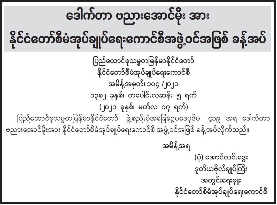ဒေါက်တာ ဗညားအောင်မိုး အား နိုင်ငံတော်စီမံအုပ်ချုပ်ရေးကောင်စီအဖွဲ့ဝင်အဖြစ် ခန့်အပ်