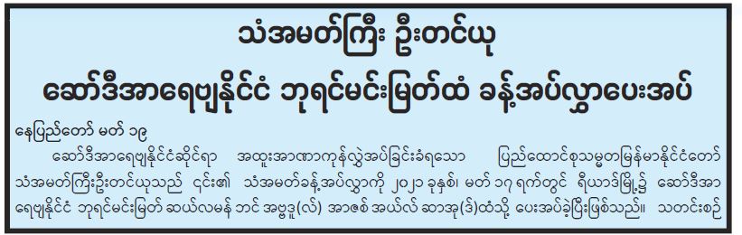 မြစ်ကြီးနားလေဆိပ်မှ ခရီးသည်တင်လေယာဉ်အား KIA အဖွဲ့နှင့် PDF အမည်ခံအကြမ်းဖက်သောင်းကျန်းသူ ပူးပေါင်းအဖွဲ့များက ယုတ်မာပက်စက်စွာ FPV suicide drone များဖြင့် ပစ်ခတ်တိုက်ခိုက်ခဲ့မှုအပေါ် ပြင်းထန်စွာ ကန့်ကွက်ရှုတ်ချကြောင်း သဘောထားများထုတ်ပြန်