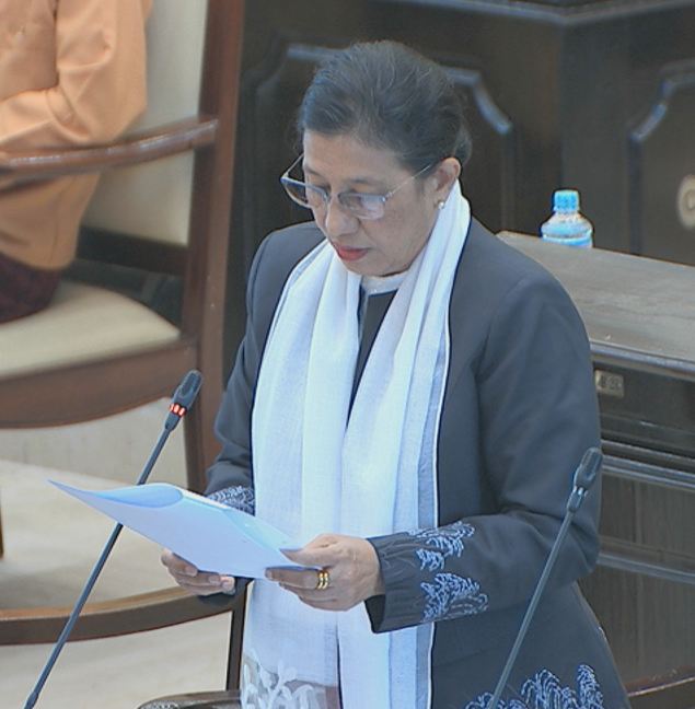 ဆက်လက်၍ အမျိုးသားလွှတ်တော် ဥပဒေကြမ်းကော်မတီဝင် ဒေါ်လှဌေး (ခေါ်) ဒေါ်အုန်းကြည် က အဆိုပါဥပဒေကြမ်းနှင့် စပ်လျဉ်း၍ ဥပဒေကြမ်းကော်မတီ၏ အစီရင်ခံစာကို ဖတ်ကြားရှင်းလင်းသည်။