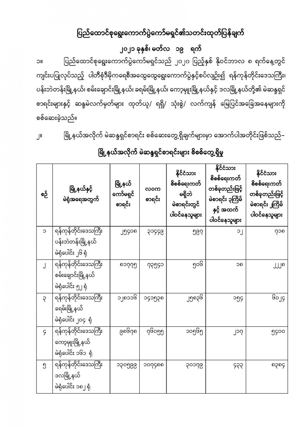 ပြည်ထောင်စုရွေးကောက်ပွဲကော်မရှင်၏သတင်းထုတ်ပြန်ချက် ၂၀၂၁ ခုနှစ်၊ မတ်လ ၁၉ ရက်