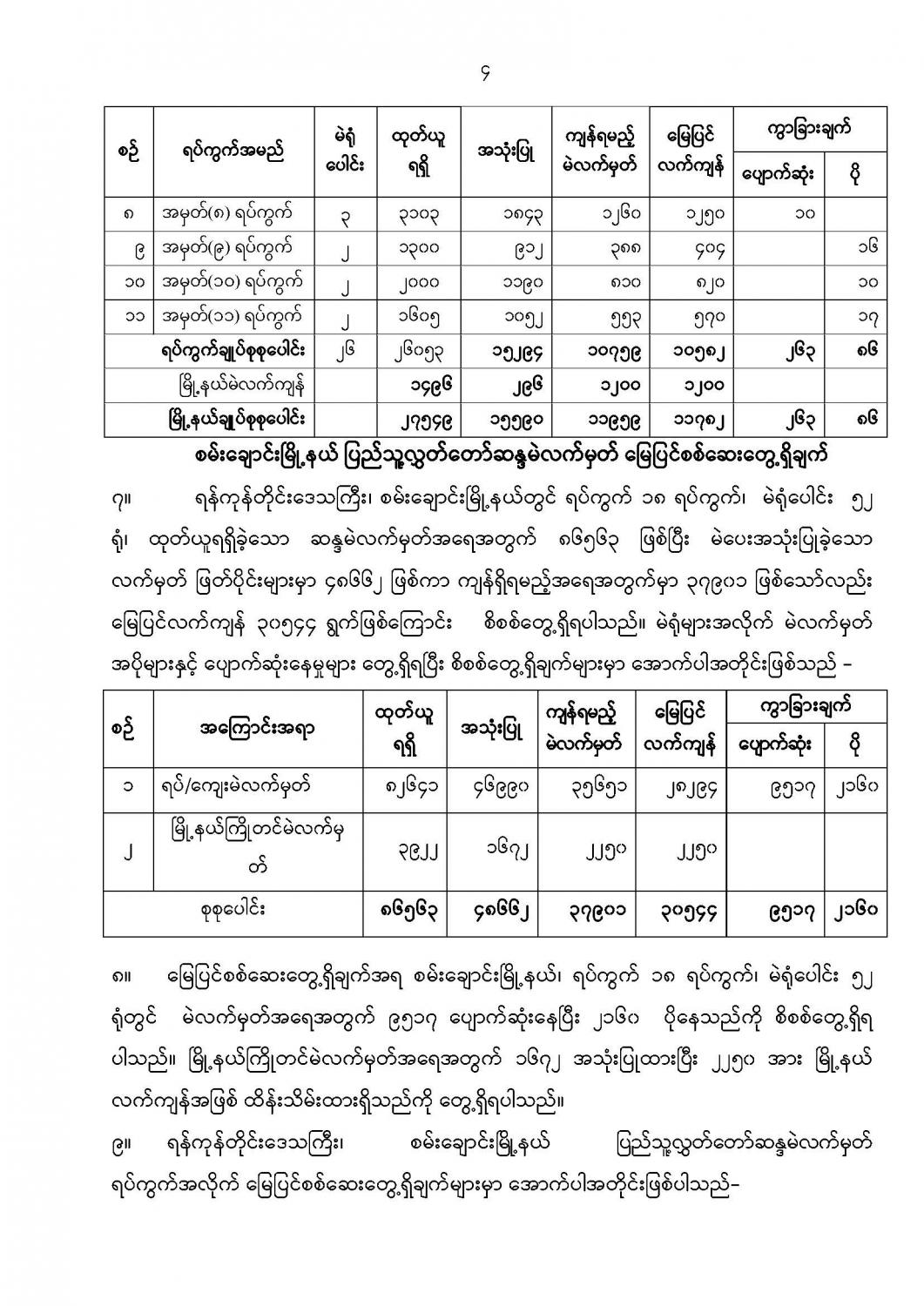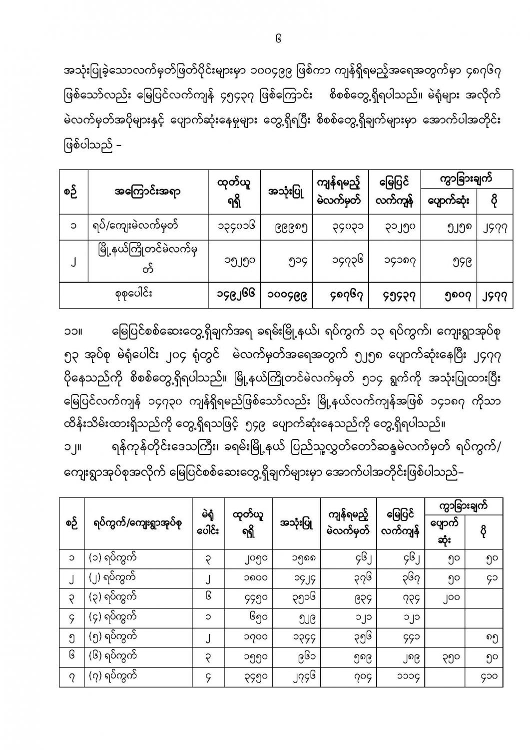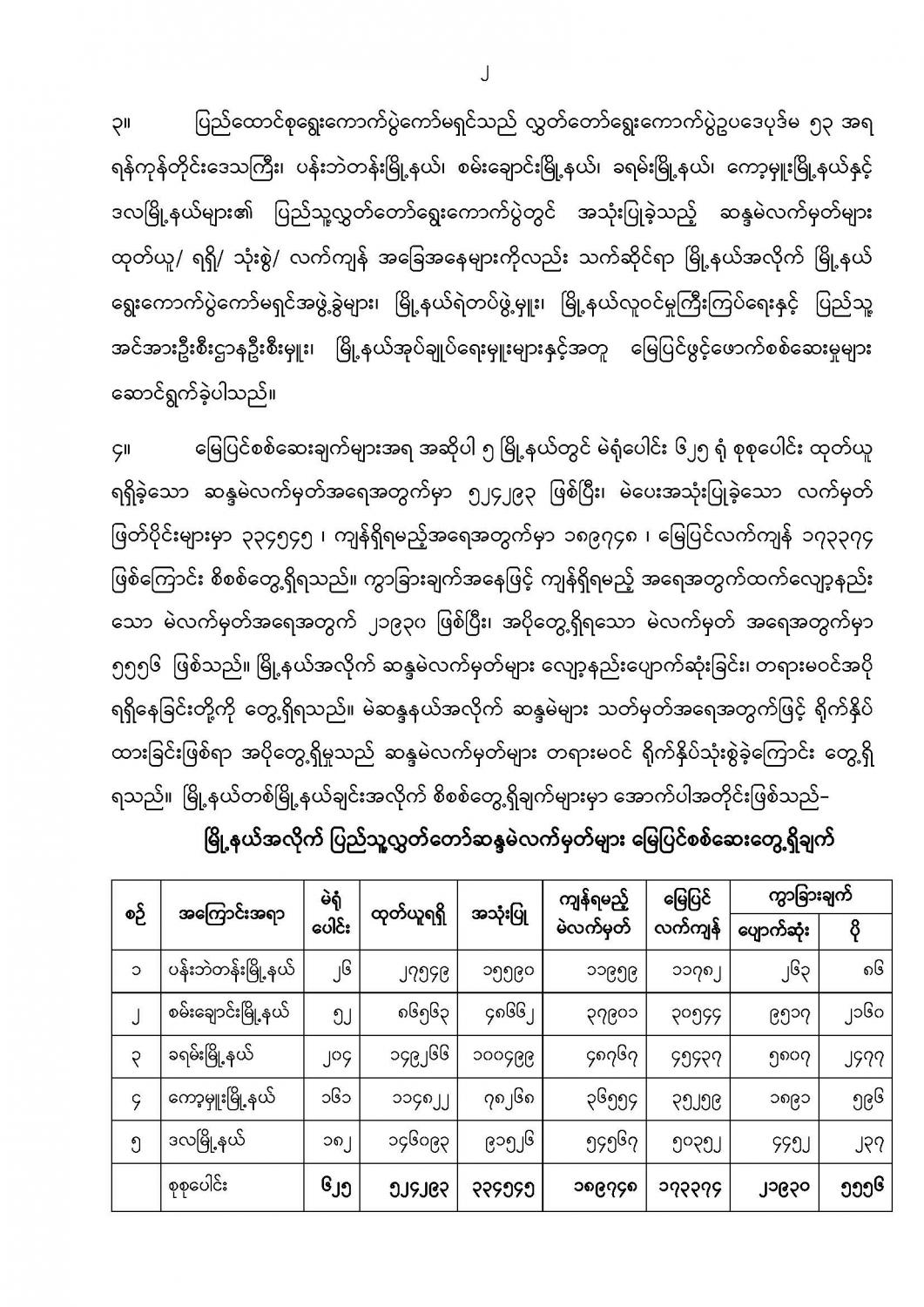 ရန်ကုန်မြို့နှင့် မန္တလေးမြို့အတွက် ရည်ညွှန်းလက်ကားဈေးနှုန်းများနှင့် ပြည်ထောင်စုနယ်မြေ နေပြည်တော်၊ တိုင်းဒေသကြီး/ပြည်နယ် မြို့တော်များအတွက် ရည်ညွှန်းလက်လီဈေးနှုန်းများ
