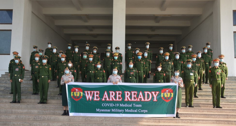 COVID-19 ရောဂါ ကာကွယ်၊ ထိန်းချုပ်၊ ကုသရေးလုပ်ငန်းများ အရှိန်အဟုန်မြင့် ဆောင်ရွက်နိုင်ရန် ဖွင့်လှစ်ထားရှိသည့် ရန်ကုန်တိုင်းဒေသကြီး၊ လှည်းကူးမြို့နယ်၊ COVID-19 ရောဂါ ကုသရေးဌာန(ဖောင်ကြီး)တွင် တပ်မတော်ဆေးဝန်ထမ်းတပ်ဖွဲ့ဝင် ပါရဂူများနှင့် ဆေးမှူးဆရာဝန်များ ပါဝင်သော ဆေးအဖွဲ့များက ပါဝင်ကူညီတာဝန်ထမ်းဆောင်လျက်ရှိ သည်။