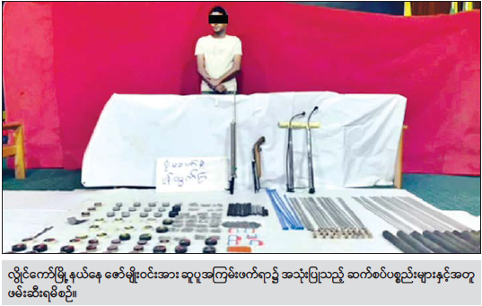 နေပြည်တော် မတ် ၂၅ မြို့နယ်အချို့၌ ဆူပူအကြမ်းဖက်မှုလုပ်ရပ်များတွင် အသုံးပြုမည့် လက်နက်ကိရိယာများကို လက်ဝယ် ထားရှိသူများနှင့်အတူဆက်လက်ဖော်ထုတ်ဖမ်းဆီး ရမိခဲ့ကြောင်း သိရသည်။ လုံခြုံရေးတပ်ဖွဲ့ဝင်များသည် နိုင်ငံတော်လုံခြုံ ရေး၊ တရားဥပဒေစိုးမိုးရေးနှင့် ရပ်ရွာအေးချမ်း သာယာရေးတို့အတွက်ဆူပူအကြမ်းဖက်လူစုလူဝေး ထိန်းသိမ်းခြင်းများ၊ ဆူပူအကြမ်းဖက်သူ လူစုလူဝေး များမှ အများပြည်သူသုံး လမ်းမကြီးများနှင့် လမ်းသွယ်များတွင် ပြုလုပ်ထားရှိသော အတား အဆီးများ ရှင်းလင်းဖယ်ရှားခြင်းလုပ်ငန်းများအားဆောင်ရွက်နေသကဲ့သို့ အကြမ်း ဖက်မှု လုပ်ရပ်များ တွင် အသုံးပြုရန်အတွက် ရည်ရွယ်ပြုလုပ်ထားရှိသော လက်နက် ပစ္စည်း ကိရိယာများကို ဖော်ထုတ်ဖမ်းဆီး ခြင်းများကိုလည်း နေ့စဉ်ဆောင်ရွက်လျက်ရှိ ကြောင်း။ ထိုသို့ဆောင်ရွက်ခဲ့ရာ ယနေ့ မွန်းလွဲ ၂ နာရီ ၄၅ မိနစ်တွင် သတင်းအရ မင်္ဂလာဒုံမြို့နယ်၊ထောက်ကြန့်မြို့၊ ရွှေနံ့သာစံပြ ကျေးရွာအုပ်စု၊ ဂန္ဓမာ(၇)လမ်းနေ ဒေါ်သန္တာမိုး၏ နေအိမ်ကို ဝင်ရောက်ရှာဖွေရာ ဒေါ်သန္တာမိုးအား မတွေ့ရှိရဘဲ ၎င်း၏ခဲအိုဖြစ်သူ စည်သူဝင်း (၄၈)နှစ် (ဘ) ဦးတင်ဝင်းအား တွေ့ရှိသဖြင့် ထိန်းသိမ်းပြီး ဆက်လက်ရှာဖွေခဲ့ရာ စည်သူဝင်းထံမှ နံပါတ်တုတ် ( ၁ ချောင်း၊ အပြာရောင်တော်ဦးထုပ် ၁ လုံး၊ လေးခွ ၁ လက်၊ လောက်စာလုံး ၃၀၊ ဂျင်ကလိပစ်လေးခွ ၂ လက်နှင့် ဂျင်ကလိ ၁၄ ချောင်းတို့အား တွေ့ရှိ သိမ်းဆည်းရမိခဲ့ကြောင်း။ အလားတူ နံနက် ၉ နာရီခွဲတွင် သင်္ဃန်းကျွန်း မြို့နယ်၊ သုဝဏ္ဏမြို့၊ ရန်ကုန်သစ်ရပ်ကွက်၊ ဘုရင့် နောင်လမ်း၊ သောကြာဆွမ်းလောင်းအသင်း ဓမ္မာရုံ အား သတင်းအရ ဝင်ရောက်ရှာဖွေခဲ့ရာ မျိုးလွင် (၄၁)နှစ် (ဘ) ဦးတင်ငွေ၊ အောင်ကျော်ဦး (၃၅) နှစ် (ဘ) ဦးငွေလှိုင်၊ အောင်ဖြိုး (၂၄)နှစ် (ဘ) ဦးချစ်လှိုင်၊ သီဟနိုင် (၂၃)နှစ် (ဘ) ဦးကိုဌေးနှင့် ထွန်းနိုင်ဝင်း (၃၆)နှစ် (ဘ) ဦးဝင်းကြည်တို့ (၅)ဦးအား တွေ့ရှိရသဖြင့် ထိန်းသိမ်းခဲ့ပြီး ဆက်လက်ရှာဖွေခဲ့ရာ ကော်ပိုက်ဖြင့် ပြုလုပ်ထားသော ဂက်(စ်)သေနတ်၅ လက်၊ လက်လုပ်ဗုံးသီး ၁၆ လုံး၊ မီးစာကြိုးတပ် ဓာတ်ဆီပုလင်းမျိုးစုံ ၁၁၁ လုံး၊ လေးမြှင့်ဆူးချွန် ၂၂၀ ခု၊ ဂျင်ကလိမျိုးစုံ ၉၀ ချောင်း၊ ကျည်ကာမျိုးစုံ ၆ ထည်၊ ဓားမျိုးစုံ ၁၁ ချောင်း၊ သံဒိုင်း ၁၀ ခု၊ စကားပြောစက် ၃ လုံးနှင့် အလေးချိန် ၃ ကျပ်သားခန့်ရှိ ကာပိုက်ယမ်းအထုပ်ငယ် ၂၂၀ တို့ အား တွေ့ရှိသိမ်းဆည်းရမိခဲ့ကြောင်း။ ဆက်လက်၍ ကြိုတင်သတင်းရရှိထားသည့် ဘုရင့်နောင်လမ်းအတွင်း ရပ်တန့်ထားသော YGN 4D-8296 SURF 3090 pewn or spoop ယာဉ်နှင့်အတူ ကော်ပိုက်ဖြင့် ပြုလုပ်ထားသော လက်လုပ်သေနတ် ၂ လက်၊ ဂက်(စ်)ဘူးအသေး ၂၈ ဘူး၊ အဖြူရောင်ထိပ်ချွန်ခမောက် ၁၀ လုံးတို့အား ပိုင်ရှင်မဲ့ ထပ်မ