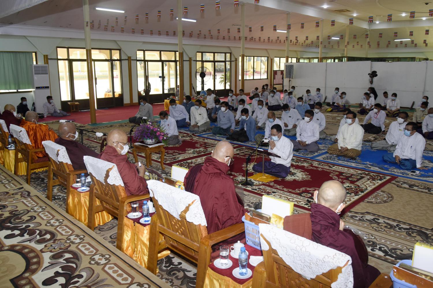 နေပြည်တော် မတ် ၂၆ ဥပ္ပါတသန္တိစေတီတော်မြတ်ကြီး ဂေါပကအဖွဲ့၏ ဩဝါဒါစရိယ ဆရာတော်ကြီးများထံမှ (၁၆)ကြိမ် မြောက် ဩဝါဒခံယူပွဲ အခမ်းအနားကို ယနေ့ညနေ ၄ နာရီက နေပြည်တော်၊ ဥပ္ပါတသန္တိစေတီတော်မြတ်ကြီးရင်ပြင်တော် ဓမ္မာရုံ၌ ကျင်းပသည်။ အခမ်းအနားသို့ နိုင်ငံတော် သံဃမဟာနာယကအဖွဲ့ဥက္ကဋ္ဌ၊ ဥပ္ပါတသန္တိစေတီတော်မြတ်ကြီး ဂေါပကအဖွဲ့၏ ဩဝါဒါစရိယ၊ မန္တလေးမြို့၊ ဗန်းမော်ကျောင်းတိုက်ပဓာနနာယက အဘိ ဓဇမဟာရဋ္ဌဂုရု၊ အဘိဓဇအဂ္ဂမဟာသဒ္ဓမ္မဇောတိက ဒေါက်တာဘဒ္ဒန္တကုမာရာဘိဝံသ မဟာထေရ်မြတ်ကြီးအမှူးပြုသော ဆရာတော်ကြီးများ ကြွရောက်တော်မူကြပြီး သာသနာရေးနှင့် ယဉ်ကျေးမှုဝန်ကြီးဌာန ပြည်ထောင်စုဝန်ကြီး ဦးကိုကို၊ နေပြည်တော်ကောင်စီဥက္ကဋ္ဌ ဒေါက်တာမောင်မောင်နိုင်၊ ဆောက်လုပ်ရေးဝန်ကြီးဌာန ဒုတိယဝန်ကြီး၊ နေပြည်တော်ကောင်စီဝင်များ၊ အမြဲတမ်းအတွင်းဝန်နှင့် ညွှန်ကြားရေးမှူးချုပ်များ၊ စေတီတော်ဂေါပကအဖွဲ့ဝင်များနှင့် တာဝန်ရှိသူများ တက်ရောက်ဩဝါဒခံယူကြသည်။ ဩဝါဒခံယူပွဲအခမ်းအနားကို နမောတဿသုံးကြိမ်ရွတ်ဆို ဘုရားကန်တော့၍ ဖွင့်လှစ်ပြီး နိုင်ငံတော် သံဃမဟာနာယကအဖွဲ့ဥက္ကဋ္ဌ၊ ဥပ္ပါတသန္တိစေတီတော်မြတ်ကြီး ဂေါပကအဖွဲ့၏ ဩဝါဒါစရိယ၊ မန္တလေးမြို့၊ ဗန်းမော်ကျောင်းတိုက် ပဓာနနာယကဆရာတော်ကြီးထံမှ ဧည့်ပရိသတ်များက ငါးပါးသီလ ခံယူဆောက်တည်ကြကာ ဆရာတော်ကြီးများ ရွတ်ပွားသရဇ္စျာယ်တော်မူသော ပရိတ်တရားတော်များကို နာယူကြည်ညိုကြသည်။ ထို့နောက် သာသနာရေးနှင့် ယဉ်ကျေးမှုဝန်ကြီးဌာန ပြည်ထောင်စုဝန်ကြီး ဦးကိုကိုနှင့် နေပြည်တော်ကောင်စီဥက္ကဋ္ဌ ဒေါက်တာမောင်မောင်နိုင်တို့က သာသနာရေးဆိုင်ရာများ လျှောက်ထားတင်ပြကြသည်။ ယင်းနောက် နိုင်ငံတော် သံဃမဟာနာယကအဖွဲ့ဥက္ကဋ္ဌ၊ ဥပ္ပါတသန္တိစေတီတော်မြတ်ကြီး ဂေါပကအဖွဲ့၏ ဩဝါဒါစရိယ၊ မန္တလေးမြို့၊ ဗန်းမော်ကျောင်းတိုက် ပဓာနနာယကဆရာတော်နှင့် နိုင်ငံတော်သံဃမဟာနာယကအဖွဲ့အကျိုးတော်ဆောင် သန်လျင်မင်းကျောင်း ဆရာတော်ကြီးတို့က ဩဝါဒကထာ မိန့်ကြားတော်မူသည်။ ထို့နောက် ပြည်ထောင်စုဝန်ကြီး ဦးကိုကို၊ နေပြည်တော်ကောင်စီဥက္ကဋ္ဌ ဒေါက်တာမောင်မောင်နိုင်နှင့် ဧည့်ပရိသတ်များက ဆရာတော်ကြီးများထံ လှူဖွယ်ဝတ္ထုပစ္စည်းများ ဆက်ကပ်လှူဒါန်းကြသည်။ ထို့နောက် နိုင်ငံတော်သံဃမဟာနာယကအဖွဲ့ အကျိုးတော်ဆောင်၊ ဥပ္ပါတသန္တိစေတီတော်မြတ်ကြီး ဂေါပကအဖွဲ့၏ ဩဝါဒါစရိယ၊ ရန်ကုန်တိုင်းဒေသကြီး၊ သန်လျင်မြို့၊ မင်းကျောင်းပထမပြန်စာသင်တိုက် ပဓာနနာယက ဘဒ္ဒန္တစန္ဒိမာဘိဝံသ ဆရာတော်ကြီးထံမှ ဧည့်ပရိသတ်များက အနုမောဒနာတရားနာကြားကြပြီး လှူဒါန်းမှူအစုစုတို့အတွက် ရေ စက်သွန်းလောင်း အမျှပေးဝေကြကာ “ဗုဒ္ဓသာသနံ စိရံ တိဋ္ဌတု