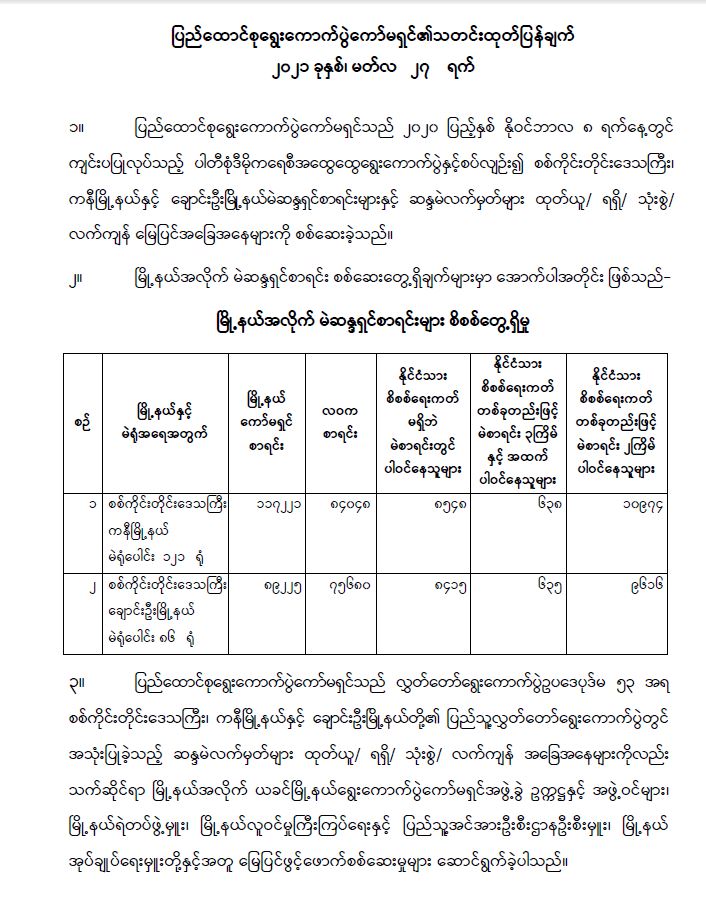 ပြည်ထောင်စုရွေးကောက်ပွဲကော်မရှင်၏သတင်းထုတ်ပြန်ချက် ၂၀၂၁ ခုနှစ်၊ မတ်လ ၂၇ ရက်