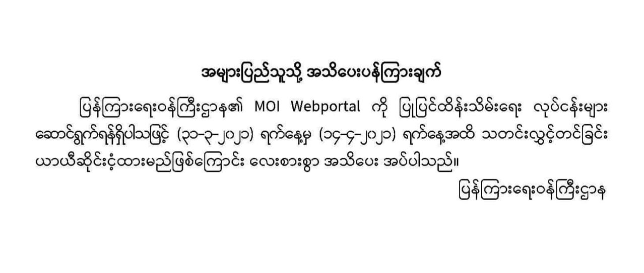အများပြည်သူသို့ အသိပေးပန်ကြားချက်