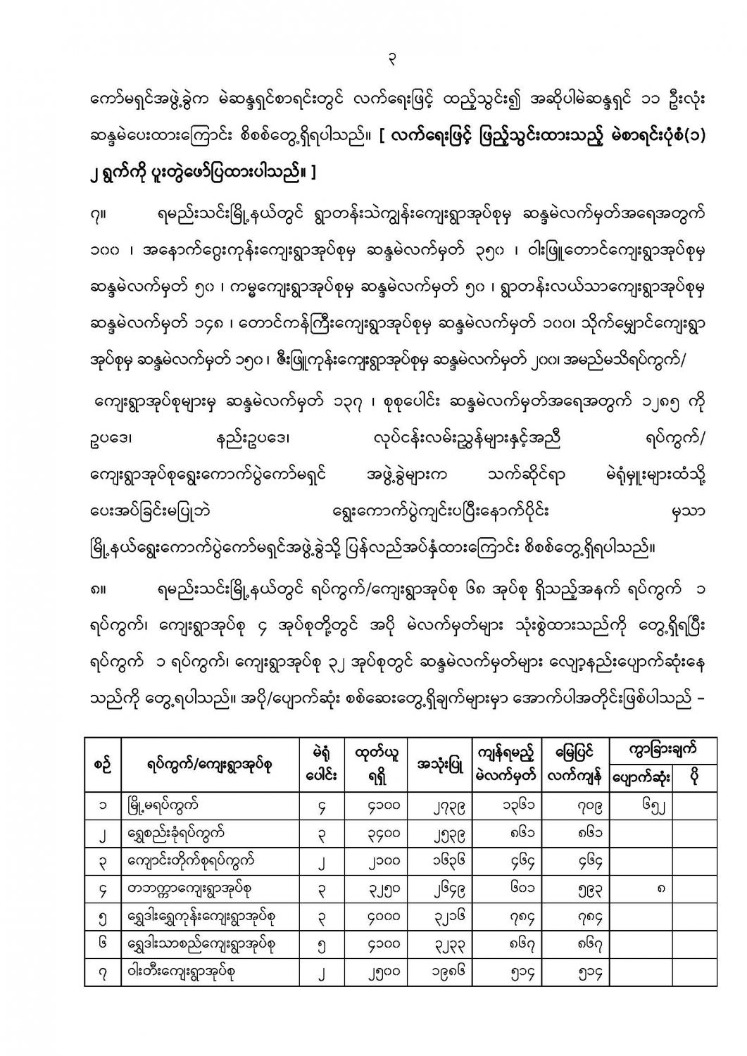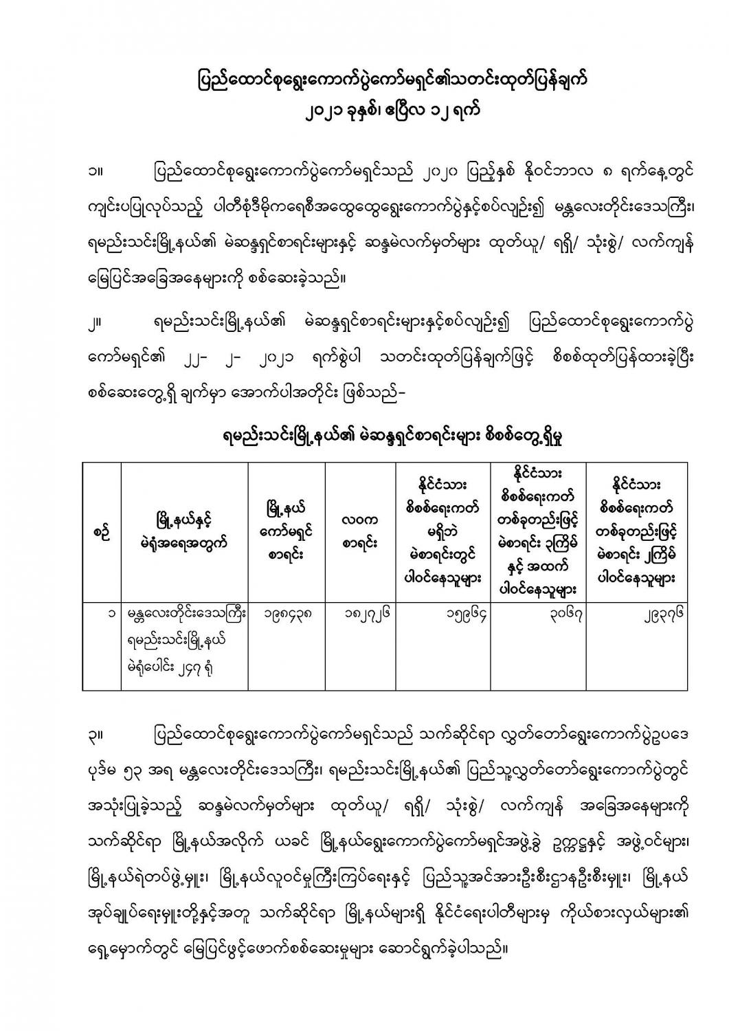 ရန်ကုန်မြို့နှင့် မန္တလေးမြို့အတွက် ရည်ညွှန်းလက်ကားဈေးနှုန်းများနှင့် ပြည်ထောင်စုနယ်မြေ နေပြည်တော်၊ တိုင်းဒေသကြီး/ပြည်နယ် မြို့တော်များအတွက် ရည်ညွှန်းလက်လီဈေးနှုန်းများ