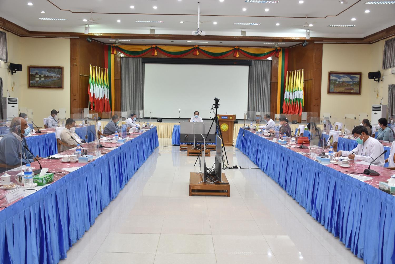 နေပြည်တော်ပြည်သူ့ဆေးရုံကြီး (ခုတင်-၁၀၀၀)၏ ဆေးကုသရေးလုပ်ငန်းများ ဆောင်ရွက်မှု အခြေအနေနှင့် ပတ်သက်သည့် ညှိနှိုင်းအစည်းအဝေးကို ယနေ့နံနက်ပိုင်းတွင် လည်းကောင်း၊ ပြည်ထောင်စုနယ်မြေ၊ နေပြည်တော်ရှိ အခြားအထူးကုဆေးရုံကြီးများနှင့် ပြည်သူ့ဆေးရုံကြီးများ၏ ဆေးကုသရေးလုပ်ငန်းများနှင့်ပတ်သက်သည့် ညှိနှိုင်းအစည်းအဝေးကို ယနေ့မွန်းလွဲပိုင်းတွင် လည်းကောင်း ကျန်းမာရေးနှင့်အားကစားဝန်ကြီးဌာန အစည်းအဝေးခန်းမ၌ ကျင်းပသည်။