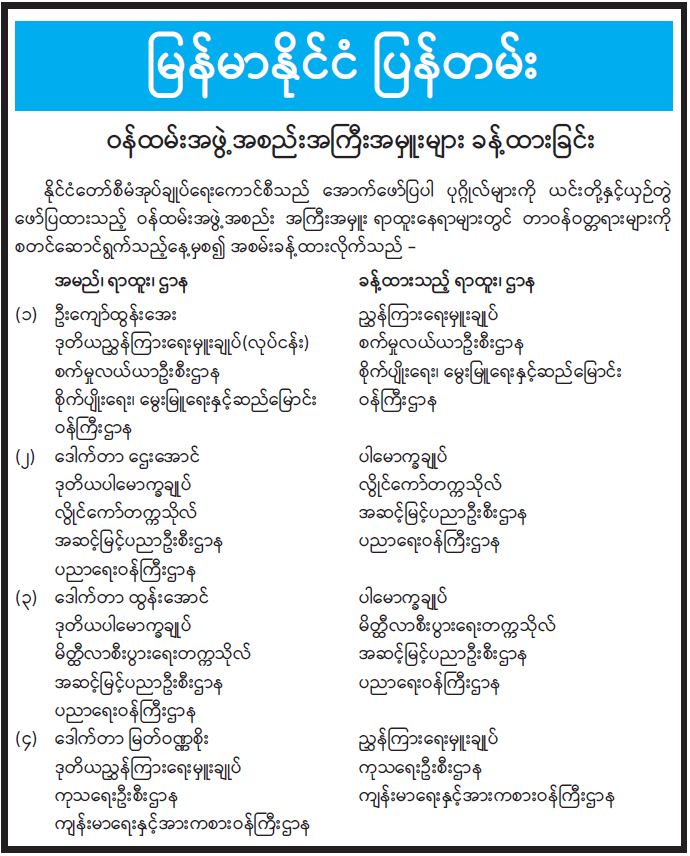ဝန်ကြီးဌာန ကြေညာချက်များ