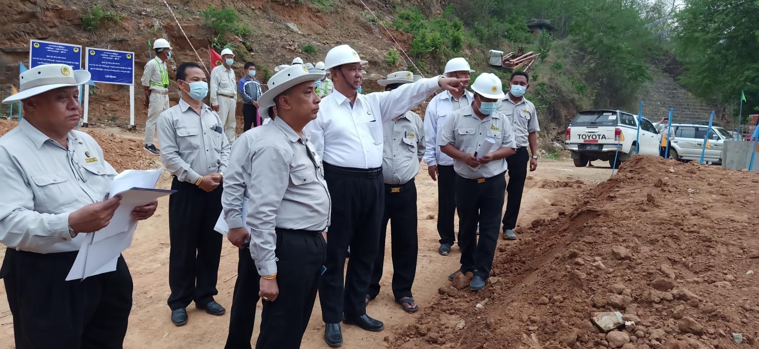 ဆောက်လုပ်ရေးဝန်ကြီးဌာန ပြည်ထောင်စုဝန်ကြီး ဦးရွှေလေးသည် ဧပြီ (၂၅) ရက် နံနက်ပိုင်းတွင် တာချီလိတ် - မိုင်းဆတ်လမ်း ကွန်ကရစ်ခင်းခြင်းလုပ်ငန်းများ ဆောင်ရွက်ပြီးစီးမှုတို့ကို လမ်းတစ်လျှောက်ကြည့်ရှုစစ်ဆေးပြီး လမ်းစခန်းရှင်းလင်းဆောင်တွင် လမ်းဦးစီးဌာန ညွှန်ကြားရေးမှူး (မြို့ပြ) ဦးရဲလင်း က မိုင်းဆတ် - တာချီလိတ်လမ်း (0.0 Km မှ 97.76 Km အတွင်း) ကွန်ကရစ်လမ်း 13.09 Km၊ ကတ္တရာလမ်း 11.30 Km၊ ကျောက်လမ်း 52.818 Km၊ အမာခံလမ်း 15.96 Km ၊ မြေလမ်း 4.525 Km ၊ စုစုပေါင်း 97.76 Km အား ဘဏ္ဍာရေး နှစ်အလိုက် လုပ်ငန်းဆောင်ရွက်ထားရှိမှုနှင့် ဆက်လက်ဆောင်ရွက်မည့် လုပ်ငန်းအစီအစဉ်များကို မြေပုံကားချပ်ဖြင့် တင်ပြသည်။