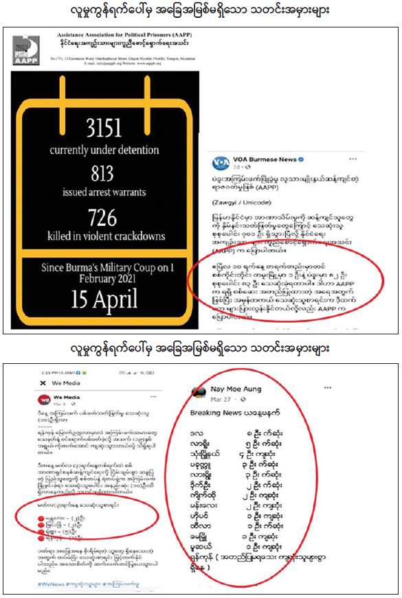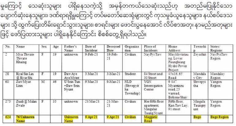 ဆူပူအကြမ်းဖက်မှု ဖြစ်စဉ်များတွင် မှန်ကန်မှုမရှိသည့် သေဆုံးမှုစာရင်းများနှင့် ပတ်သက်၍ သတင်းထုတ်ပြန်ချက် 04/29/2021