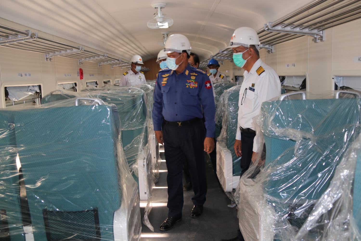 ဆက်လက်၍ ပြည်ထောင်စုဝန်ကြီးသည် မန္တလေးဘူတာကြီး အဆောက်အဦနှင့် ဆက်စပ် လုပ်ငန်း ဆိုင်ရာနေရာများ ၊ ပြည်တွင်း ရေကြောင်းပို့ဆောင်ရေးလက်အောက်ရှိ ရတနာ ပုံသင်္ဘောကျင်း၌ သင်္ဘောလွန်းတင်ပြုပြင်မှု၊ မြန်မာ့မီးရထား ဒီဇယ်စက်ခေါင်း၊ စက်ခေါင်းအရံ ပစ္စည်းများ ထုတ်လုပ်ခြင်းလုပ်ငန်း၊  မြန်မာ့မီးရထား လူစီးတွဲနှင့်ကုန်တွဲစက်ရုံ (မြစ်ငယ်)တွဲ သစ်တည်ဆောက်ရေး စက်ရုံအတွင်းရှိ ကိုရီးယားနိုင်ငံ နှင့်တရုတ်နိုင်ငံများမှ ဝယ်ယူထားသည့် လူစီးတွဲသစ်များနှင့် တွဲတည်ဆောက် ရေးလုပ်ငန်းနှင့် မြစ်ငယ်ဘူတာရုံရှိ အထူးရထားတွဲ ဆိုင်း အား ကြည့်ရှုစစ်ဆေးရာတွင် တာဝန်ရှိသူများက လိုက်လံပြသရှင်းလင်း တင်ပြသည်။