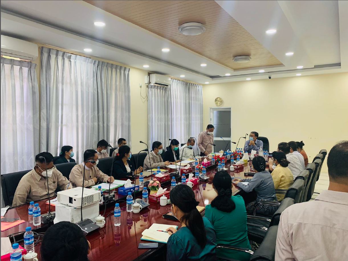 တွေ့ဆုံစဉ် အကောက်ခွန်ဦးစီးဌာန၊ ညွှန်ကြားရေးမှူးချုပ် ဦးကျော်ထင်က ဦးစီးဌာန၏ လုပ်ငန်းဆောင်ရွက်မှုဆိုင်ရာ ကိစ္စရပ်များကို ရှင်းလင်းတင်ပြသည်။