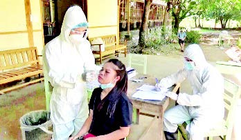 ထိုသို့ Quarantine ထားရှိသည့် ပြည်ပမှ ပြန်လည်ဝင်ရောက်လာသူ ၅၂ ဦးကို ယနေ့နံနက်ပိုင်းတွင် အရှေ့တောင်တိုင်းစစ်ဌာနချုပ်၊ နယ်မြေခံ တပ်မတော်ဆေးရုံမှ ဆရာဝန်များ၊ ပါရဂူများ၊ ဆေးမှူးများနှင့် သူနာပြုများက မြို့နယ် စီမံအုပ်ချုပ်ရေး ကောင်စီ အဖွဲ့ဝင်များ၊ လူမှုရေးအသင်းအဖွဲ့များနှင့်ပူးပေါင်း၍ နှာခေါင်း တို့ဖတ်၊ အာခေါင် တို့ဖတ် ရယူခြင်း၊ RDT နည်းဖြင့် စစ်ဆေးခြင်းများကို ဆက်လက်ဆောင်ရွက်ပေးခဲ့ကြောင်း သတင်း ရရှိသည်။