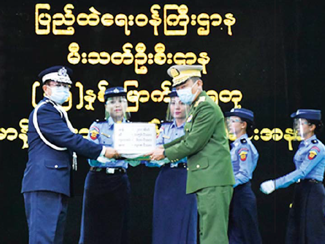 အခမ်းအနားအစီအစဉ်ပထမ ပိုင်းတွင်နိုင်ငံတော်စီမံအုပ်ချုပ်ရေး ကောင်စီဥက္ကဋ္ဌ၊ တပ်မတော် ကာကွယ်ရေး ဦးစီးချုပ် ဗိုလ်ချုပ်မှူးကြီး မင်းအောင်လှိုင်မှ မီးသတ်တပ်ဖွဲ့ဝင်များ အတွက် ပေးအပ်သည့် ဂုဏ်ပြုဆုငွေကျပ် သိန်း ၁၀၀ နှင့် ဆန်အိတ် ၂၀၀ ၊ ဆီ၁၁၅၆ပိဿာ၊ ကုလားပဲပိဿာ ၆၀၀၊ ဆား ၁၃၀၈ ပိဿာတို့အား ရန်ကုန်တိုင်း စစ်ဌာနချုပ် တိုင်းမှူး ဗိုလ်ချုပ်ညွန့်ဝင်းဆွေက မီးသတ် ဦးစီးဌာန ညွှန်ကြားရေးမှူးချုပ် ဦးမြတ်သူထံပေး အပ်သည်။