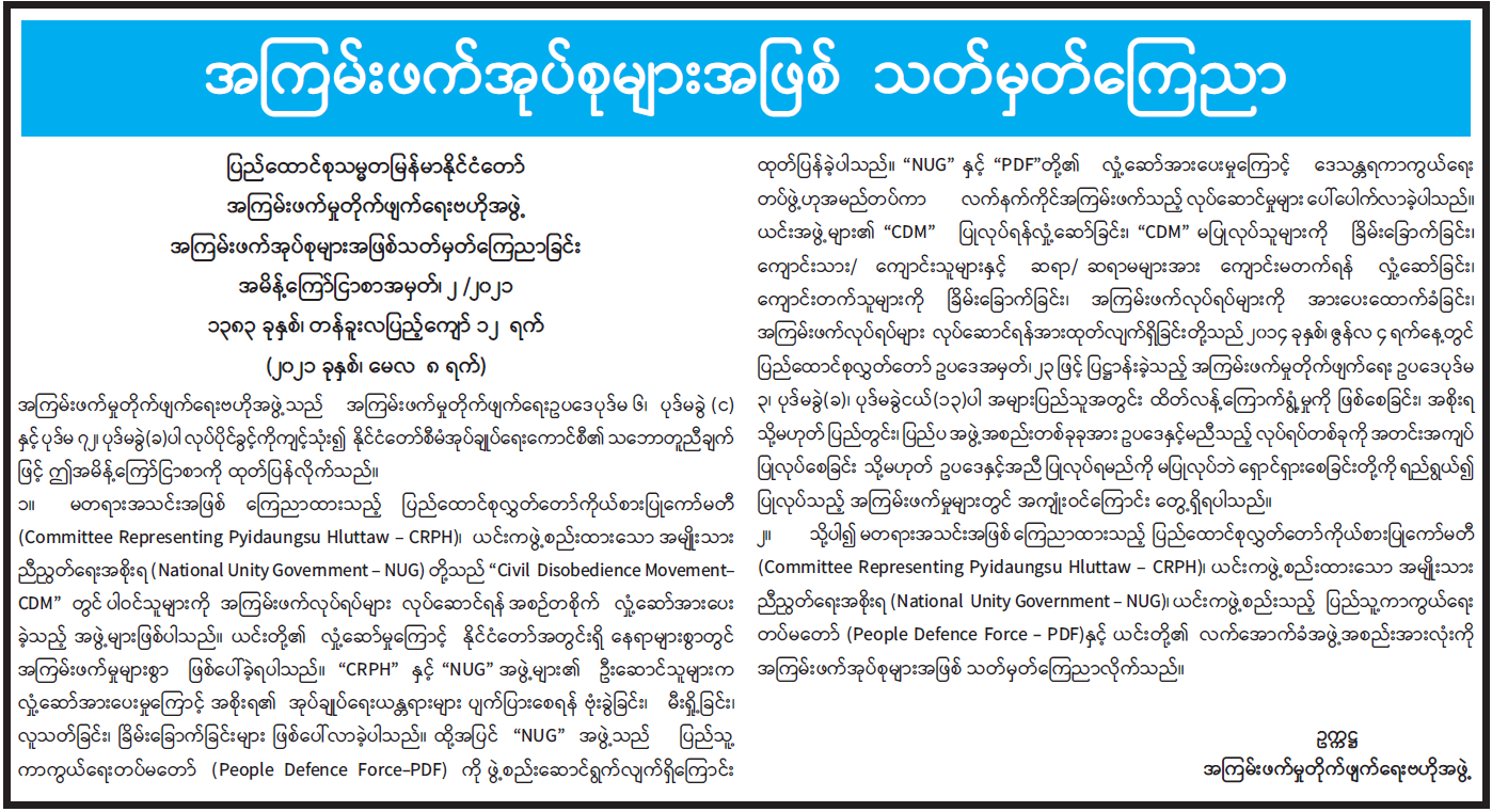 နိုင်ငံတော်အစိုးရ၏ ကြေညာချက်များ