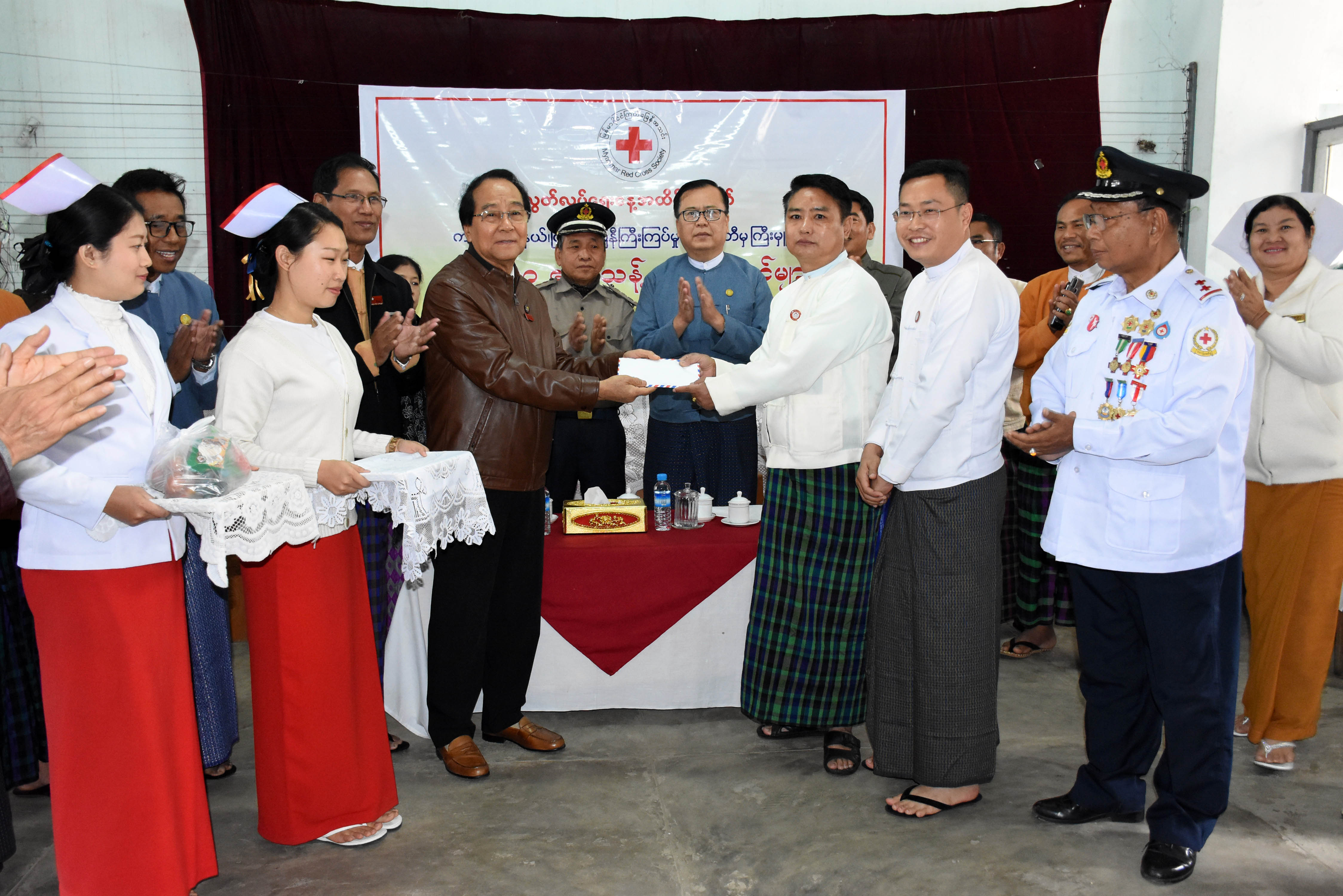 စုပေါင်းသွေးလှူဒါန်းပွဲကျင်းပနေမှုကို ပြည်နယ်ဝန်ကြီးချုပ် ဒေါက်တာခက်အောင်နှင့် ပြည်နယ်အစိုးရအဖွဲ့ဝင်ဝန်ကြီးများက တက်ရောက်ကြပြီး ပြည်နယ်ဝန်ကြီးချုပ်က သွေးလှူဒါန်းပွဲအတွက် အလှူငွေကျပ် (၅) သိန်းကို ပြည်နယ်ကြက်ခြေနီကြီးကြပ်မှုကော်မတီဥက္ကဋ္ဌထံ ပေးအပ်လှူဒါန်းကာ သံဃာတော်များ အပါအဝင် စေတနာ့သွေးအလှူရှင်များ၏ စုပေါင်းသွေးလှူဒါန်းနိုင်ရေး ပြည်သူ့ကျန်းမာရေးဦးစီးဌာန၊ ပြည်နယ်ဦးစီးမှူး ဒေါက်တာအေးသိန်း၊ မြစ်ကြီးနားပြည်သူ့ဆေးရုံအုပ်ကြီး ဒေါက်တာဘုန်းမော်တို့နှင့်အတူ ပြည်နယ်ကြက်ခြေနီကြီးကြပ်မှုကော်မတီဥက္ကဋ္ဌ၊ ပြည်နယ်တပ်ဖွဲ့မှူး ဦးဒေါင်ဟောင်းနှင့် တပ်ဖွဲ့ဝင်များ၊သူနာပြုဆရာမများ ၏ကူညီဆောင်ရွက်ပေးနေမှုတို့နှင့် သွေးလှူဒါန်းရှင်များ၏ သွေးဖောက်ထုတ်လှူဒါန်းမှုတို့ကို အားပေးကြည့်ရှုခဲ့ကြပြီး အာဟာရဖြည့်စားသောက်ဖွယ်ရာများကို ပေးအပ်ခဲ့ကြသည်။