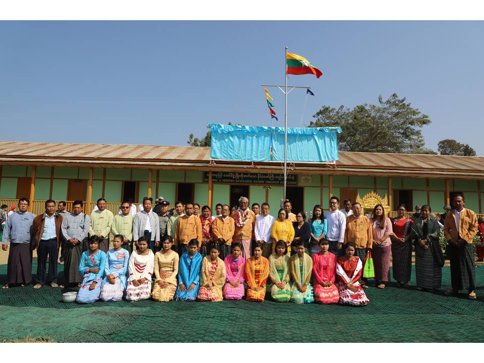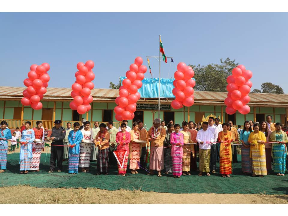 ထို့နောက် အလှူရှင် (အဉ္ဇလီဖြိုး) ဆောက်လုပ်ရေးကုမ္ပဏီ ဦးခင်မောင်လင်း+ဒေါ်ခင်အေးချို မိသားစုတို့က ကျောင်းဆောင်သစ် အထိမ်းအမှတ်အလံကို ပေးအပ်ရာ တိုင်းဒေသကြီး လူမှုရေးဝန်ကြီးမှ လက်ခံရယူပြီး ဂုဏ်ပြုမှတ်တမ်းလွှာများကို ပြန်လည်ပေးအပ်ခဲ့ကြောင်း သိရသည်။