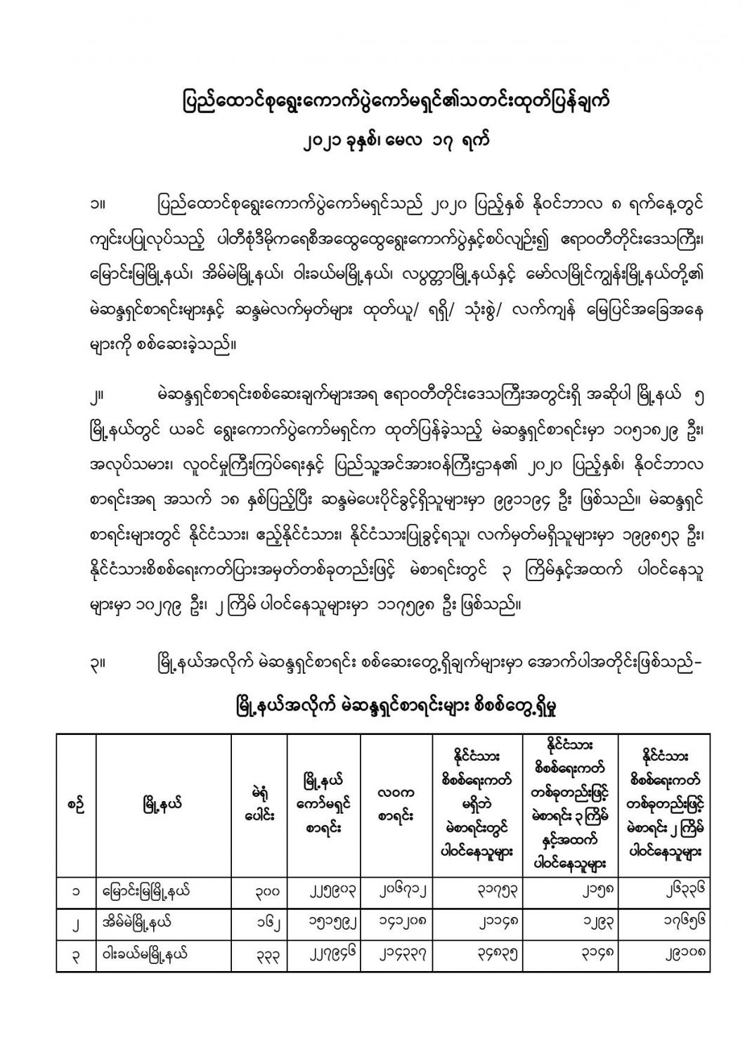 ပြည်ထောင်စုရွေးကောက်ပွဲကော်မရှင်၏သတင်းထုတ်ပြန်ချက် ၂၀၂၁ ခုနှစ်၊ မေလ ၁၇ ရက်