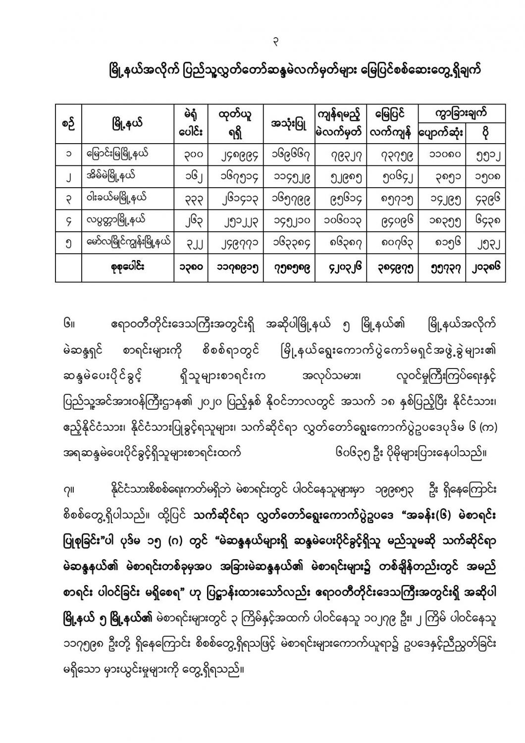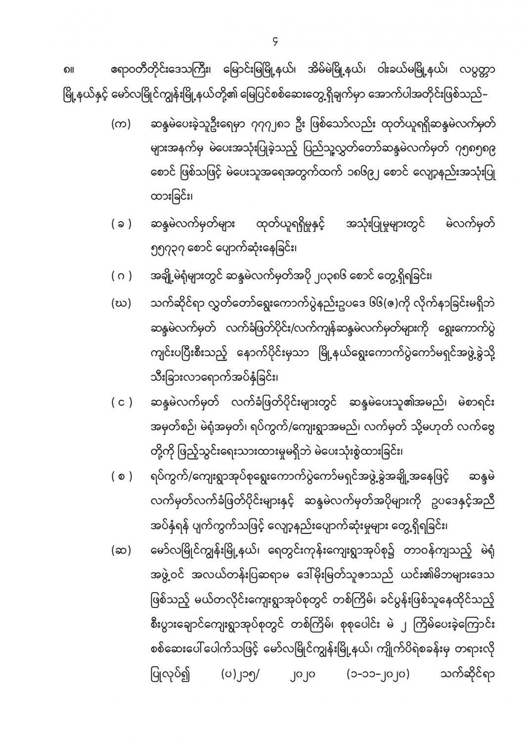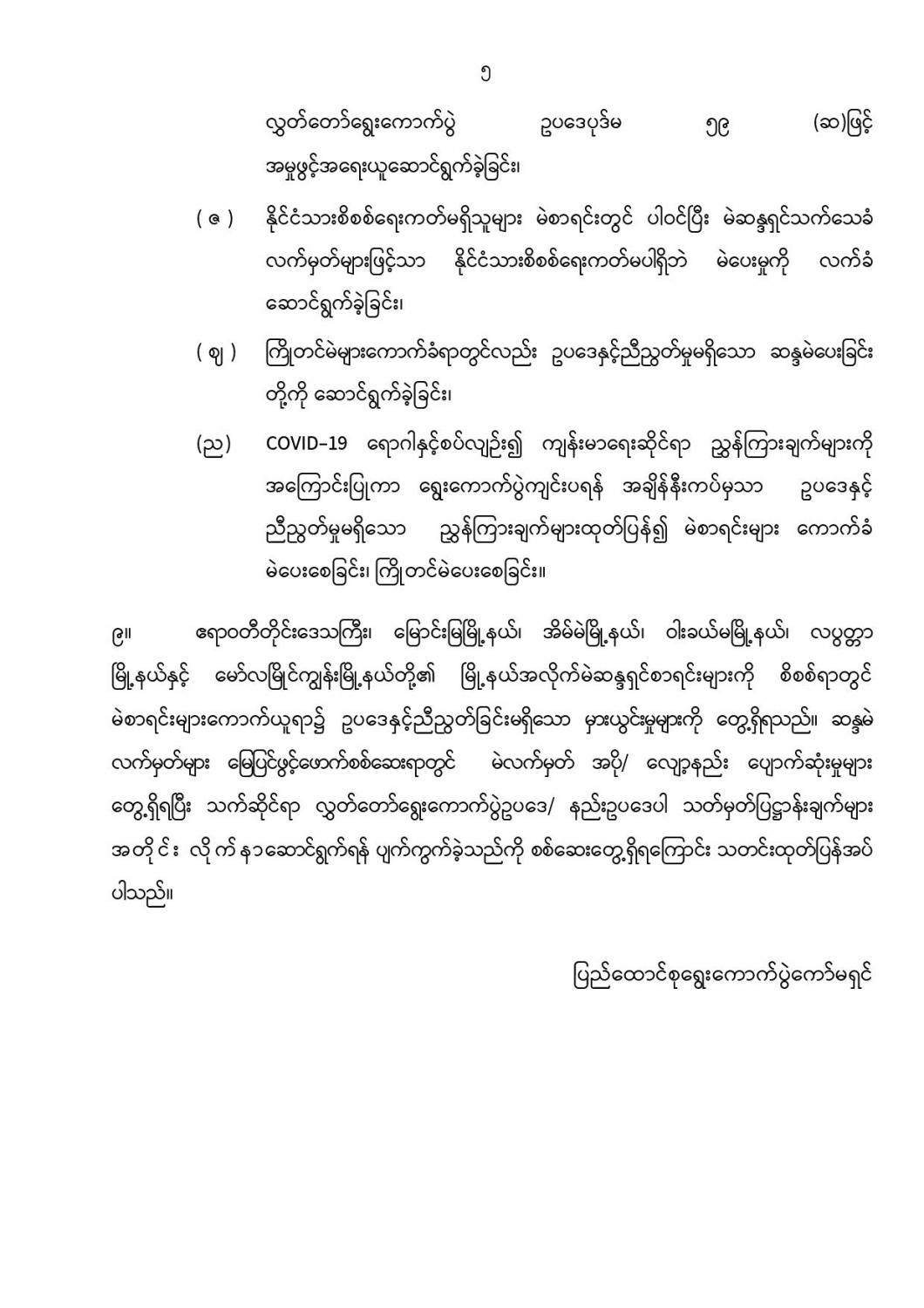 ဦးစီးဌာနနှင့် လုပ်ငန်းများ၏ ကြေညာချက်များ