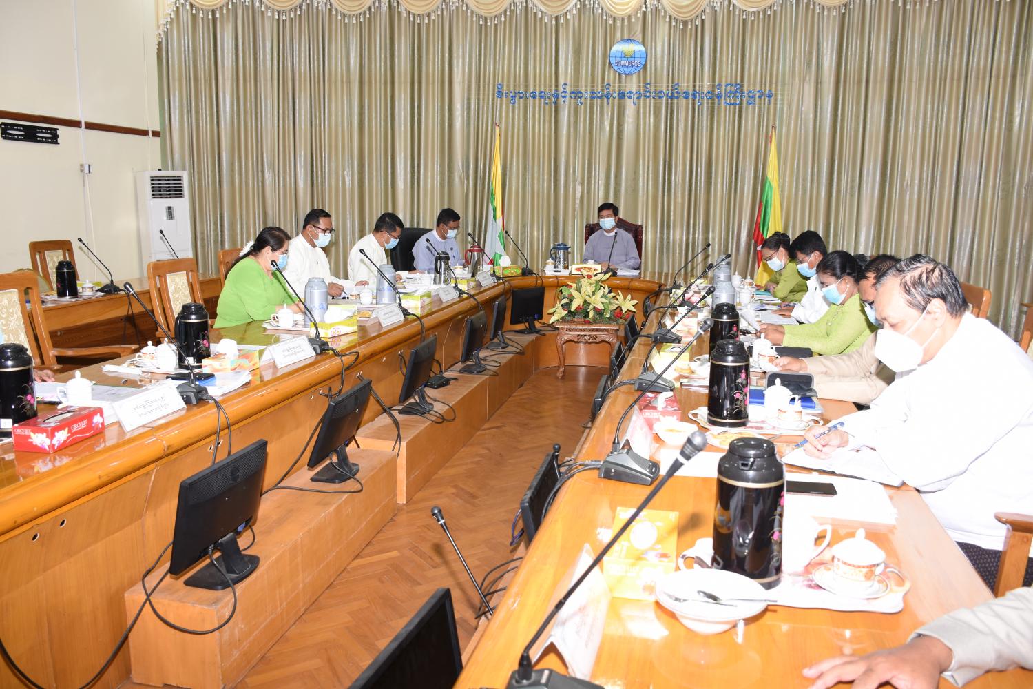 ရှေးဦးစွာ ဦးစီးဌာနများမှ ညွှန်ကြားရေးမှူးချုပ်များ၊ ဒုတိယညွှန်ကြားရေးမှူးချုပ်များက နယ်စပ်ကုန်သွယ်ရေးစခန်းများမှ ကုန်သွယ်မှုလုပ်ငန်း ဆောင်ရွက်နေမှုများ၊ စားသုံးသူ ကာကွယ်ရေးဥပဒေအရ စားသုံးသူများကြုံတွေ့နေရသည့် အခက်အခဲများကို တိုင်ကြားနိုင် ရေးအတွက် Consumer Call Center အကောင်အထည်ဖော်ဆောင်ရွက်ထားမှုများ၊ စိုက်ပျိုး မွေးမြူရေးအခြေခံထုတ်ကုန်များ ပြည်ပသို့ ပိုမိုတင်ပို့နိုင်ရေး ဆိုင်ရာကိစ္စရပ်များ၊ မူပိုင်ခွင့်ဆိုင် ရာကိစ္စရပ်များ၊ ဒူဘိုင်းနိုင်ငံတွင် ကျင်းပမည့် Dubai Expo 2020 သို့ မြန်မာနိုင်ငံမှ လုပ်ငန်း ရှင်များပါဝင်ပြသရေးဆိုင်ရာ ကိစ္စရပ်များ၊ ဆီထွက်သီးနှံနှင့် စားသုံးဆီဖွံ့ဖြိုးတိုးတက်မှု မူဝါဒ မူဘောင်တစ်ရပ်ဖြစ်ပေါ်ရေး အကောင်အထည်ဖော် ဆောင်ရွက်နေမှုများကို ကဏ္ဍအလိုက် အသီးသီး ဆွေးနွေးတင်ပြသည်။