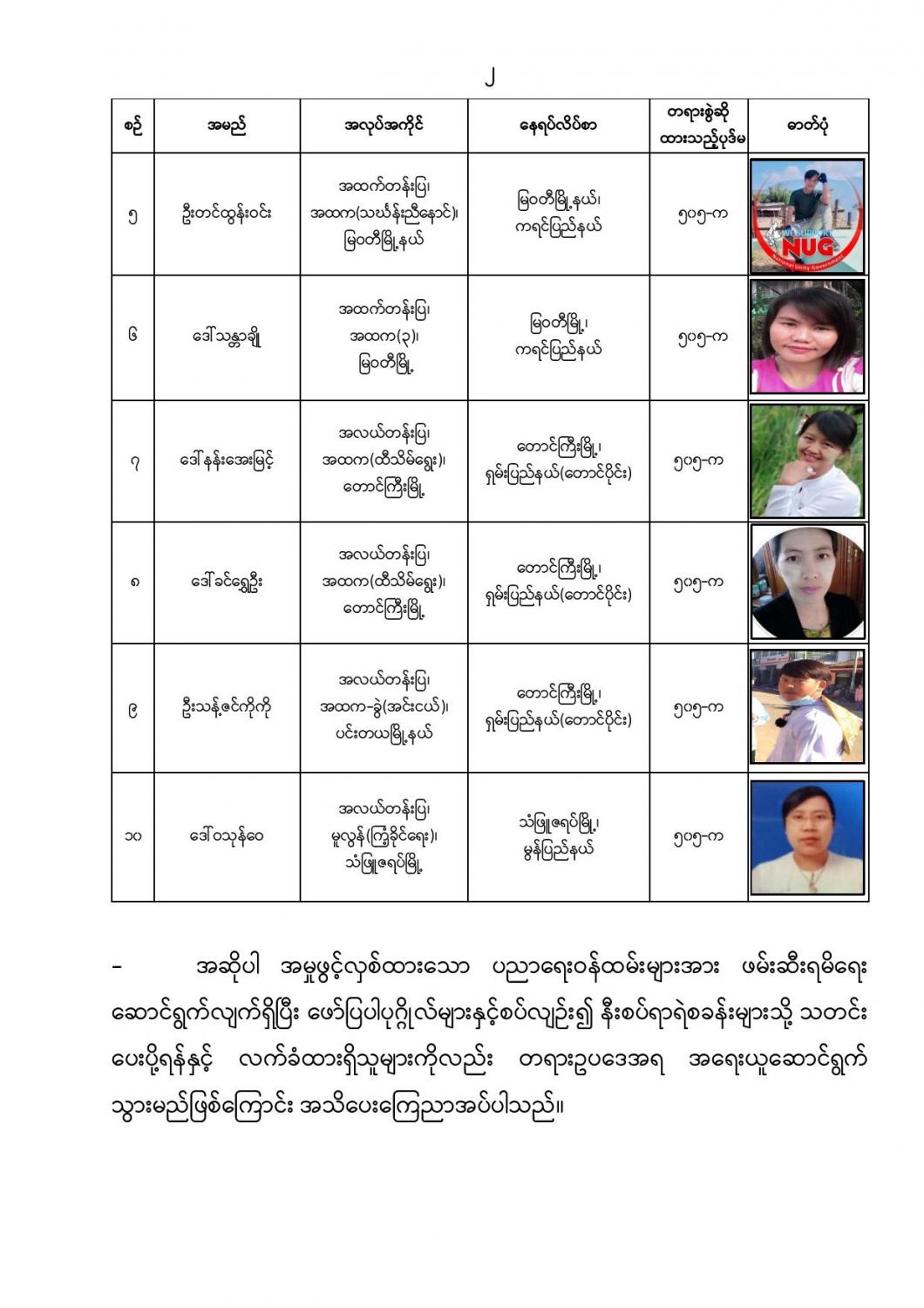 နိုင်ငံတော်တည်ငြိမ်အေးချမ်းမှုကို ပျက်ပြားစေရန်ရည်ရွယ်ချက်ဖြင့် CDM လှုပ်ရှားမှုတွင် ပါဝင်သည့်ပညာရေးဝန်ထမ်းများအား ရာဇသတ်ကြီးဥပဒေပုဒ်မ ၅၀၅-က ဖြင့် အမှုဖွင့်အရေးယူဆောင်ရွက်(၂၀-၅-၂၀၂၁)