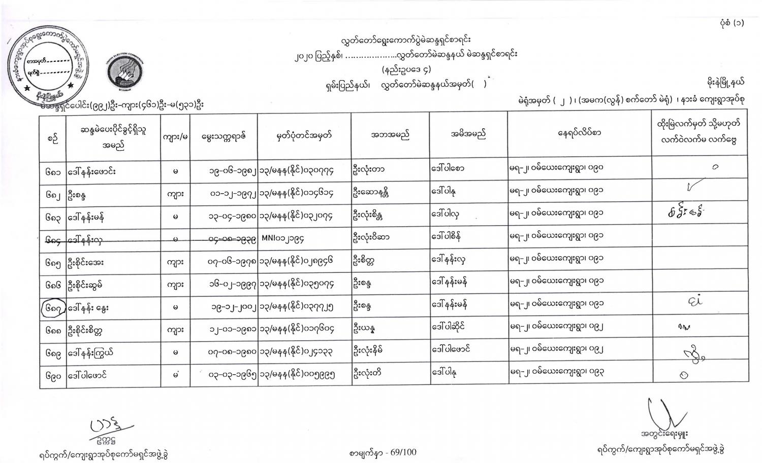 ဝန်ကြီးဌာန ကြေညာချက်များ