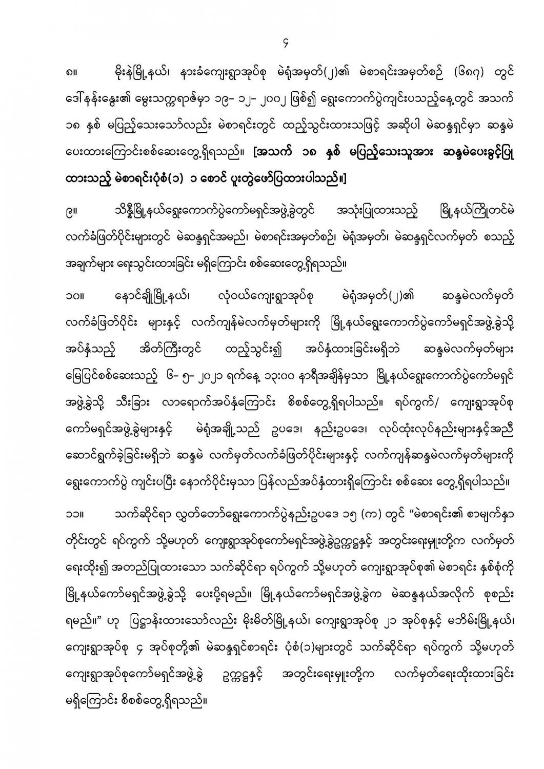 ဦးစီးဌာနနှင့် လုပ်ငန်းများ၏ ကြေညာချက်များ